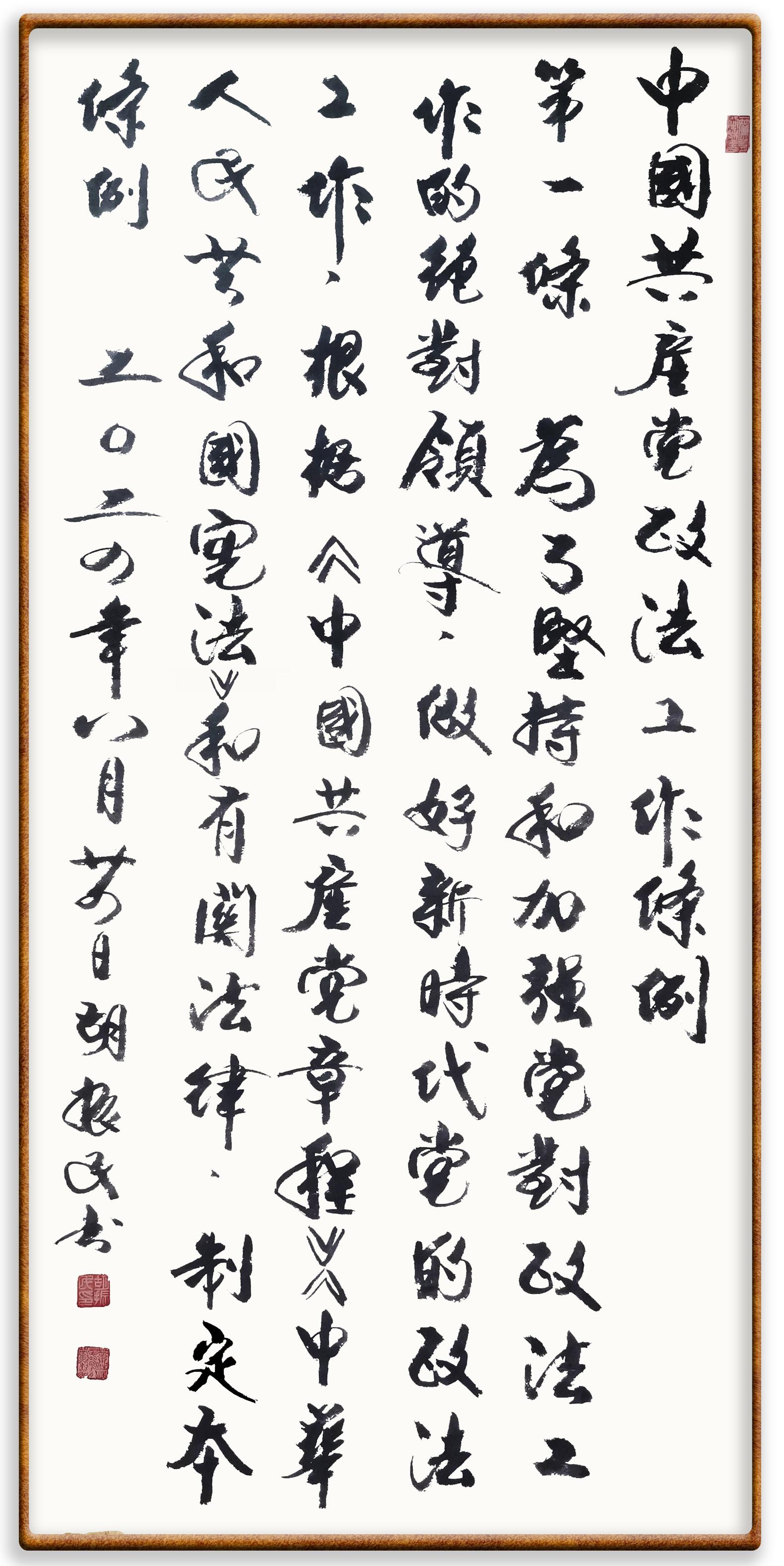 《中國(guó)共產(chǎn)黨政法工作條例》對(duì)黨領(lǐng)導(dǎo)新時(shí)代政法工作進(jìn)行全面制度擘畫(huà),為黨領(lǐng)導(dǎo)政法工作提供基本遵循,具有重大而深遠(yuǎn)的意義。為學(xué)習(xí)好、宣傳好、貫徹好、實(shí)施好這部黨內(nèi)法規(guī),繼《中華人民共和國(guó)民法典》《中華人民共和國(guó)憲法》《信訪工作條例》《中華人民共和國(guó)澳門(mén)特別行政區(qū)基本法》《中華人民共和國(guó)香港特別行政區(qū)基本法》等法律法規(guī)之后,“書(shū)·法”系列活動(dòng)將筆端對(duì)準(zhǔn)《中國(guó)共產(chǎn)黨政法工作條例》。