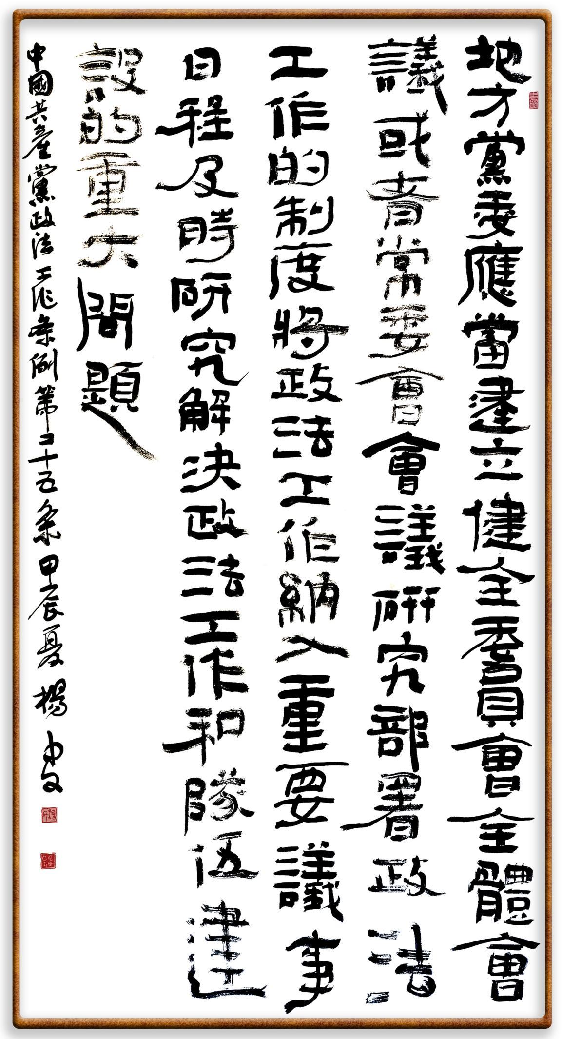 《中國共產(chǎn)黨政法工作條例》對黨領(lǐng)導(dǎo)新時(shí)代政法工作進(jìn)行全面制度擘畫,為黨領(lǐng)導(dǎo)政法工作提供基本遵循,具有重大而深遠(yuǎn)的意義。為學(xué)習(xí)好、宣傳好、貫徹好、實(shí)施好這部黨內(nèi)法規(guī),繼《中華人民共和國民法典》《中華人民共和國憲法》《信訪工作條例》《中華人民共和國澳門特別行政區(qū)基本法》《中華人民共和國香港特別行政區(qū)基本法》等法律法規(guī)之后,“書·法”系列活動(dòng)將筆端對準(zhǔn)《中國共產(chǎn)黨政法工作條例》。