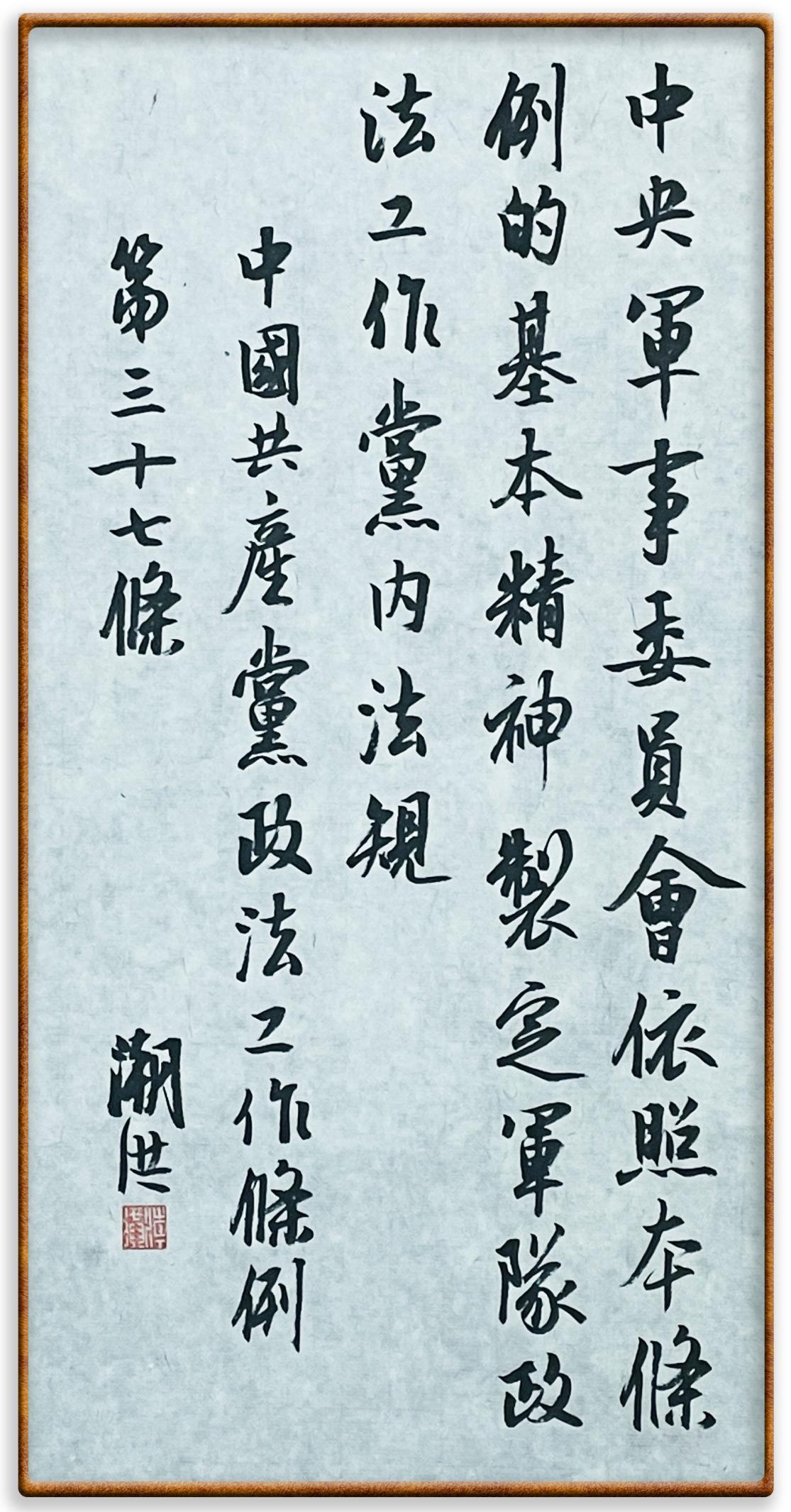 《中國共產(chǎn)黨政法工作條例》對黨領(lǐng)導(dǎo)新時代政法工作進(jìn)行全面制度擘畫,為黨領(lǐng)導(dǎo)政法工作提供基本遵循,具有重大而深遠(yuǎn)的意義。為學(xué)習(xí)好、宣傳好、貫徹好、實施好這部黨內(nèi)法規(guī),繼《中華人民共和國民法典》《中華人民共和國憲法》《信訪工作條例》《中華人民共和國澳門特別行政區(qū)基本法》《中華人民共和國香港特別行政區(qū)基本法》等法律法規(guī)之后,“書·法”系列活動將筆端對準(zhǔn)《中國共產(chǎn)黨政法工作條例》。