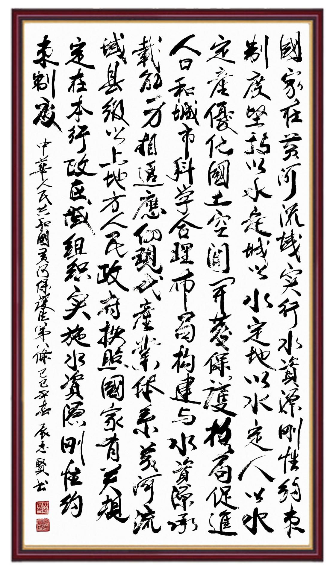 黃河寧,天下平。黃河是中華民族的發(fā)源地和搖籃,保護(hù)黃河是事關(guān)中華民族偉大復(fù)興的千秋大計。《中華人民共和國黃河保護(hù)法》為推進(jìn)水資源節(jié)約集約利用、保護(hù)傳承弘揚(yáng)黃河文化、推動黃河流域生態(tài)保護(hù)和高質(zhì)量發(fā)展提供了有力法治保障。繼書寫《中華人民共和國民法典》《中華人民共和國憲法》《中華人民共和國澳門特別行政區(qū)基本法》《中華人民共和國香港特別行政區(qū)基本法》《中華人民共和國國旗法》《中華人民共和國國徽法》《中華人民共和國國歌法》《中華人民共和國法官法》等法律法規(guī)之后,法制日報社聯(lián)合沿黃九省(區(qū))司法廳、書法家協(xié)會,將筆端對準(zhǔn)《中華人民共和國黃河保護(hù)法》。