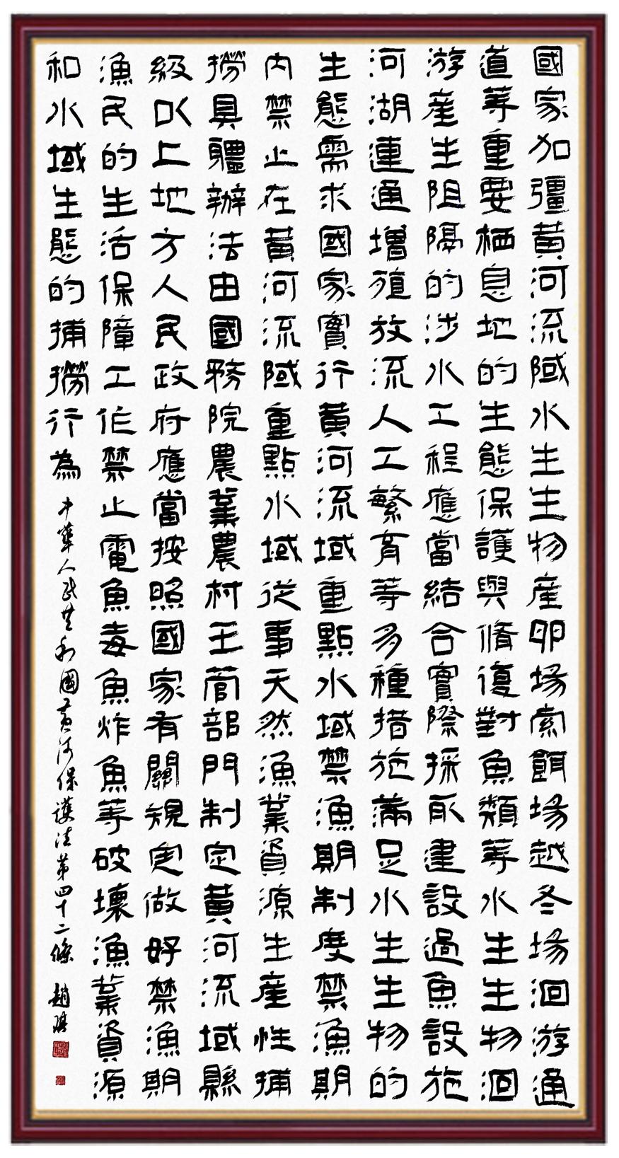 黃河寧,天下平。黃河是中華民族的發(fā)源地和搖籃,保護黃河是事關中華民族偉大復興的千秋大計?!吨腥A人民共和國黃河保護法》為推進水資源節(jié)約集約利用、保護傳承弘揚黃河文化、推動黃河流域生態(tài)保護和高質量發(fā)展提供了有力法治保障。繼書寫《中華人民共和國民法典》《中華人民共和國憲法》《中華人民共和國澳門特別行政區(qū)基本法》《中華人民共和國香港特別行政區(qū)基本法》《中華人民共和國國旗法》《中華人民共和國國徽法》《中華人民共和國國歌法》《中華人民共和國法官法》等法律法規(guī)之后,法制日報社聯合沿黃九?。▍^(qū))司法廳、書法家協會,將筆端對準《中華人民共和國黃河保護法》。