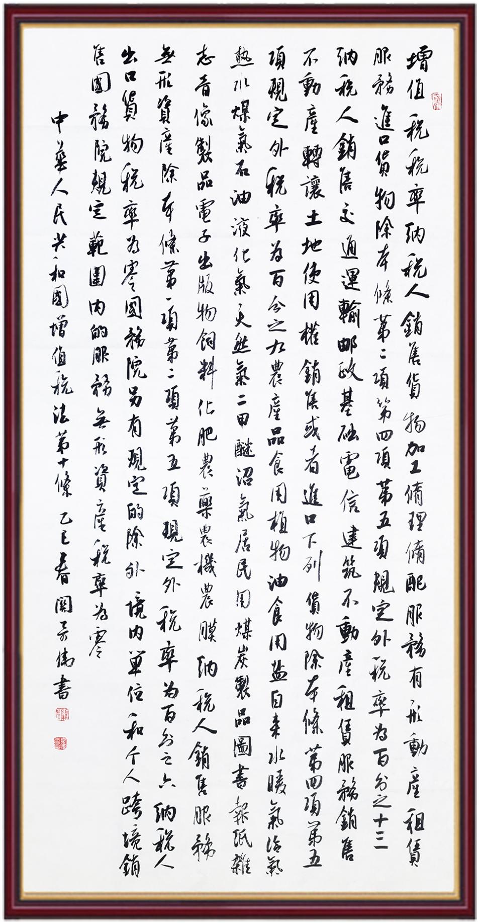 稅收一頭連著國計,一頭連著民生。全面推進依法治稅,是全面依法治國基本方略在稅收領(lǐng)域的集中體現(xiàn)?!吨腥A人民共和國增值稅法》將于2026年1月1日起施行,對全面落實稅收法定原則、健全有利于高質(zhì)量發(fā)展的增值稅制度、規(guī)范增值稅的征收和繳納、保護納稅人合法權(quán)益具有重要意義。繼書寫《中華人民共和國民法典》《中華人民共和國憲法》《中華人民共和國國旗法》《中華人民共和國國徽法》《中華人民共和國國歌法》《中華人民共和國法官法》《中華人民共和國黃河保護法》等法律法規(guī)之后,法制日報社將筆端對準(zhǔn)《中華人民共和國增值稅法》。