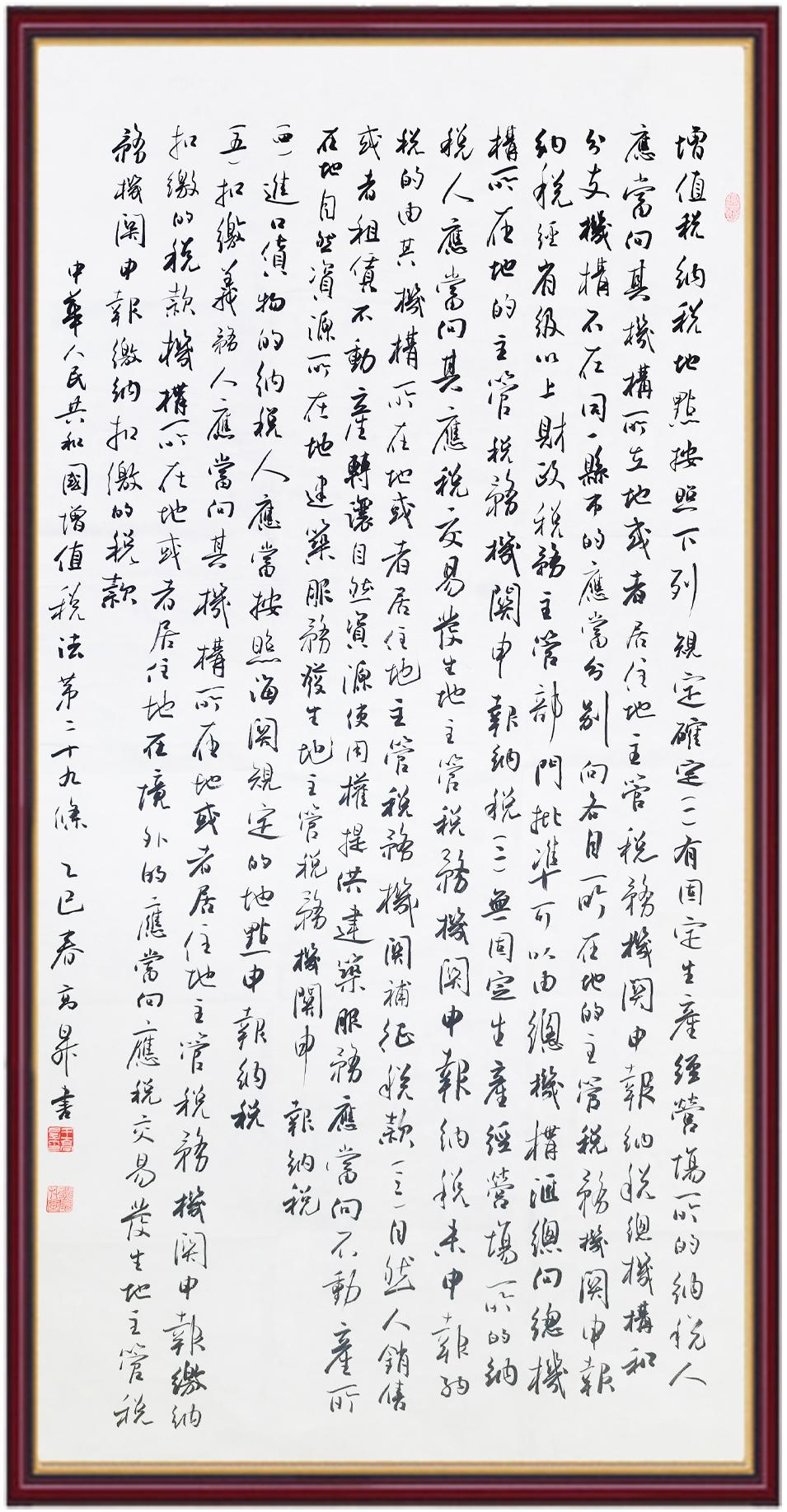 稅收一頭連著國計(jì),一頭連著民生。全面推進(jìn)依法治稅,是全面依法治國基本方略在稅收領(lǐng)域的集中體現(xiàn)?!吨腥A人民共和國增值稅法》將于2026年1月1日起施行,對(duì)全面落實(shí)稅收法定原則、健全有利于高質(zhì)量發(fā)展的增值稅制度、規(guī)范增值稅的征收和繳納、保護(hù)納稅人合法權(quán)益具有重要意義。繼書寫《中華人民共和國民法典》《中華人民共和國憲法》《中華人民共和國國旗法》《中華人民共和國國徽法》《中華人民共和國國歌法》《中華人民共和國法官法》《中華人民共和國黃河保護(hù)法》等法律法規(guī)之后,法制日?qǐng)?bào)社將筆端對(duì)準(zhǔn)《中華人民共和國增值稅法》。
