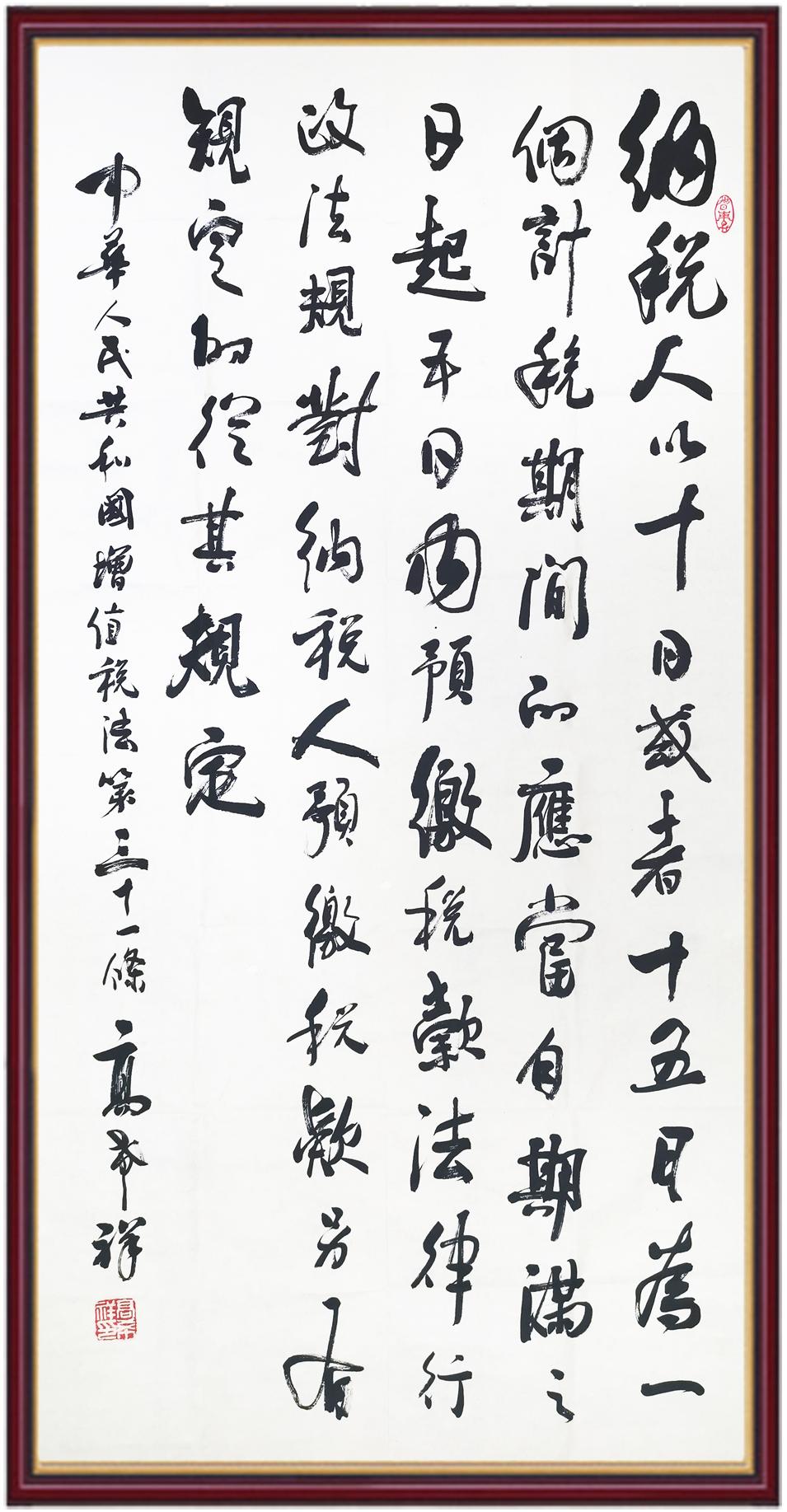 稅收一頭連著國(guó)計(jì),一頭連著民生。全面推進(jìn)依法治稅,是全面依法治國(guó)基本方略在稅收領(lǐng)域的集中體現(xiàn)。《中華人民共和國(guó)增值稅法》將于2026年1月1日起施行,對(duì)全面落實(shí)稅收法定原則、健全有利于高質(zhì)量發(fā)展的增值稅制度、規(guī)范增值稅的征收和繳納、保護(hù)納稅人合法權(quán)益具有重要意義。繼書(shū)寫(xiě)《中華人民共和國(guó)民法典》《中華人民共和國(guó)憲法》《中華人民共和國(guó)國(guó)旗法》《中華人民共和國(guó)國(guó)徽法》《中華人民共和國(guó)國(guó)歌法》《中華人民共和國(guó)法官法》《中華人民共和國(guó)黃河保護(hù)法》等法律法規(guī)之后,法制日?qǐng)?bào)社將筆端對(duì)準(zhǔn)《中華人民共和國(guó)增值稅法》。