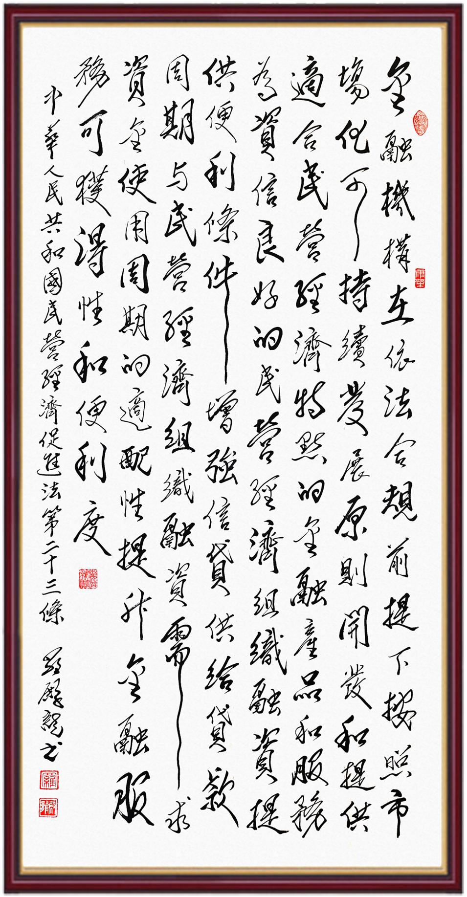 《中華人民共和國民營經(jīng)濟促進法》自今年5月20日起施行。作為我國首部專門關于民營經(jīng)濟發(fā)展的基礎性法律,民營經(jīng)濟促進法將支持和保障民營經(jīng)濟發(fā)展的法律制度融入中國特色社會主義法律體系,具有重大的法治意義,為促進民營經(jīng)濟持續(xù)、健康、高質(zhì)量發(fā)展提供了堅實的法治保障。為更好地學習、宣傳、貫徹這部法律,法治日報社聯(lián)合司法部普法與依法治理局,開展“‘書·法’系列活動之書寫《中華人民共和國民營經(jīng)濟促進法》”活動。