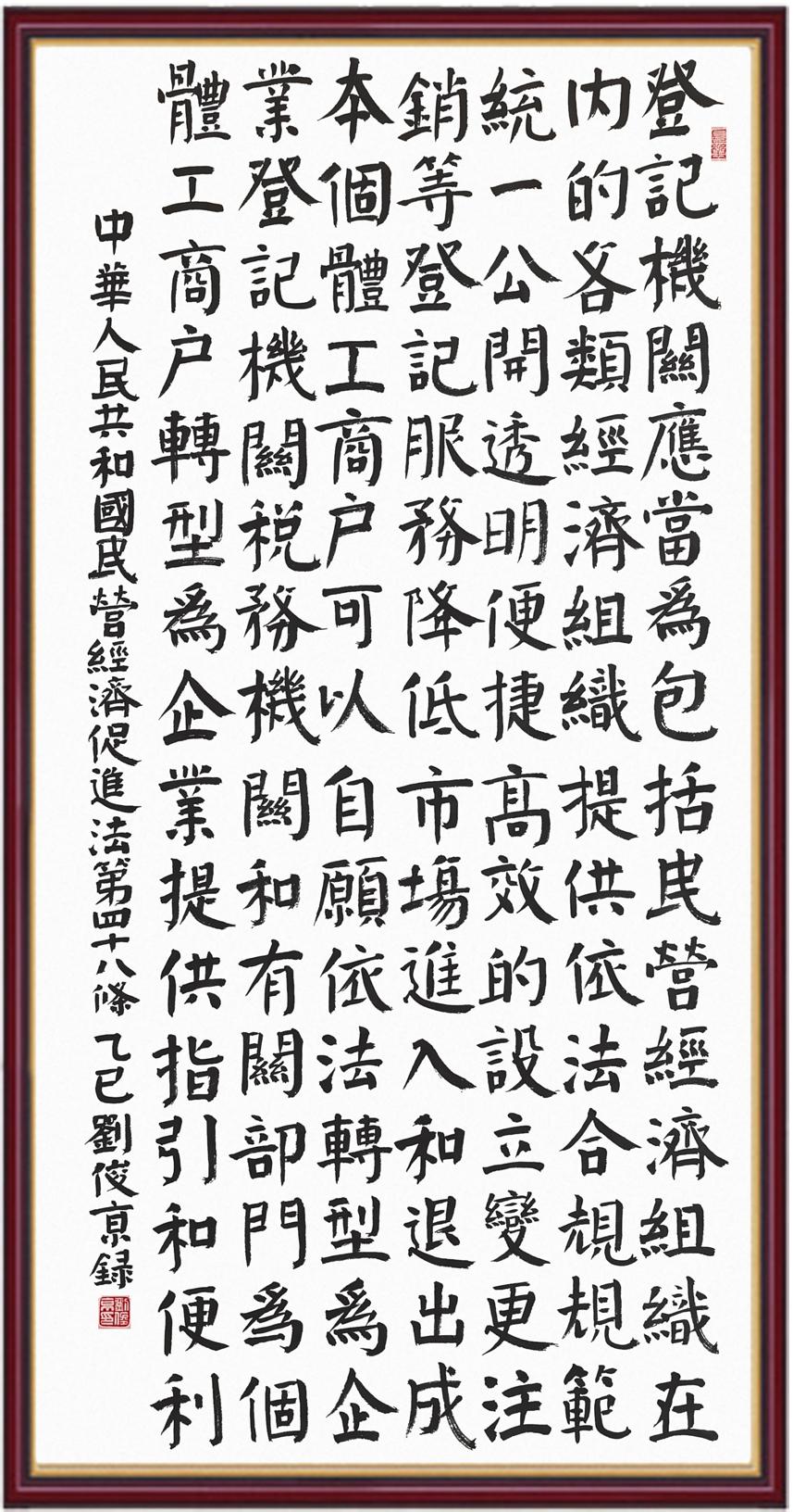《中華人民共和國民營經(jīng)濟促進法》自今年5月20日起施行。作為我國首部專門關(guān)于民營經(jīng)濟發(fā)展的基礎(chǔ)性法律,民營經(jīng)濟促進法將支持和保障民營經(jīng)濟發(fā)展的法律制度融入中國特色社會主義法律體系,具有重大的法治意義,為促進民營經(jīng)濟持續(xù)、健康、高質(zhì)量發(fā)展提供了堅實的法治保障。為更好地學(xué)習(xí)、宣傳、貫徹這部法律,法治日報社聯(lián)合司法部普法與依法治理局,開展“‘書·法’系列活動之書寫《中華人民共和國民營經(jīng)濟促進法》”活動。