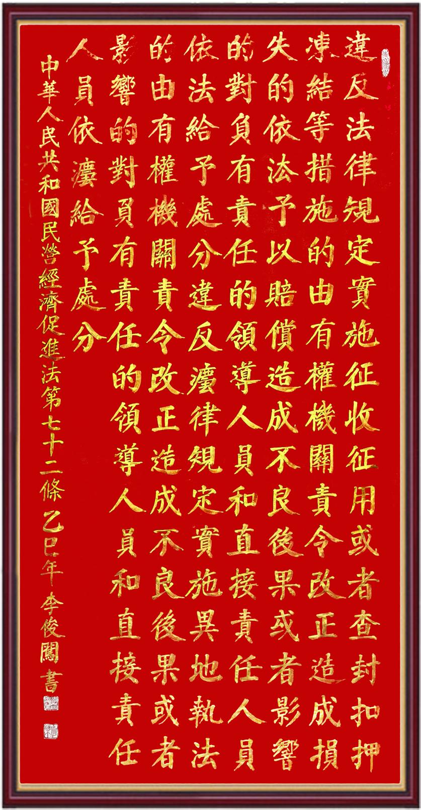《中華人民共和國(guó)民營(yíng)經(jīng)濟(jì)促進(jìn)法》自今年5月20日起施行。作為我國(guó)首部專門關(guān)于民營(yíng)經(jīng)濟(jì)發(fā)展的基礎(chǔ)性法律,民營(yíng)經(jīng)濟(jì)促進(jìn)法將支持和保障民營(yíng)經(jīng)濟(jì)發(fā)展的法律制度融入中國(guó)特色社會(huì)主義法律體系,具有重大的法治意義,為促進(jìn)民營(yíng)經(jīng)濟(jì)持續(xù)、健康、高質(zhì)量發(fā)展提供了堅(jiān)實(shí)的法治保障。為更好地學(xué)習(xí)、宣傳、貫徹這部法律,法治日?qǐng)?bào)社聯(lián)合司法部普法與依法治理局,開(kāi)展“‘書(shū)·法’系列活動(dòng)之書(shū)寫《中華人民共和國(guó)民營(yíng)經(jīng)濟(jì)促進(jìn)法》”活動(dòng)。