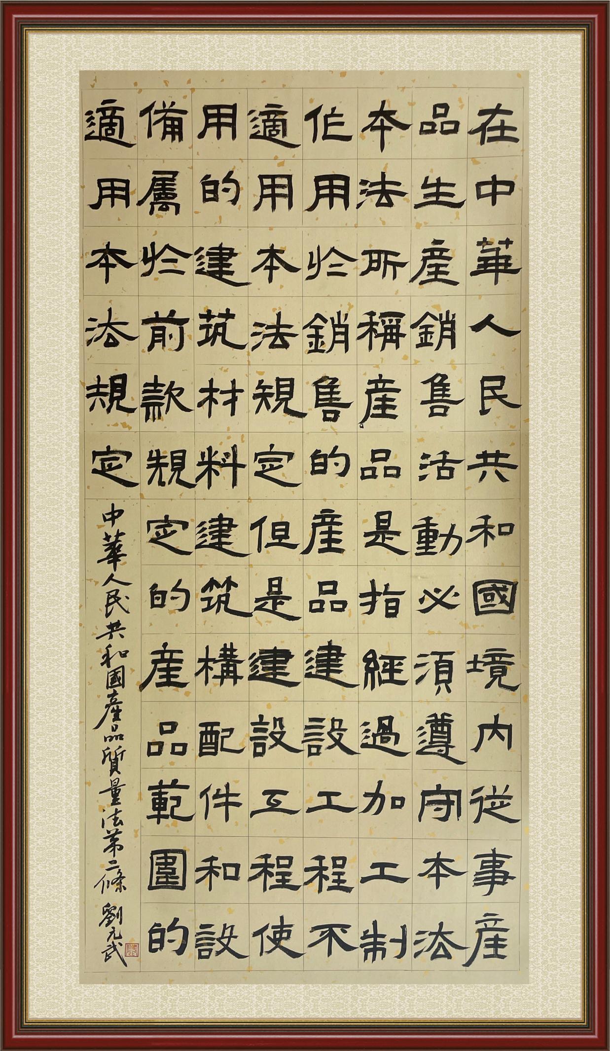 《中華人民共和國(guó)產(chǎn)品質(zhì)量法》自1993年9月1日起開(kāi)始施行,先后進(jìn)行三次修正。作為產(chǎn)品質(zhì)量領(lǐng)域的基本法律,產(chǎn)品質(zhì)量法對(duì)規(guī)范產(chǎn)品質(zhì)量管理、維護(hù)消費(fèi)者合法權(quán)益、促進(jìn)經(jīng)濟(jì)社會(huì)發(fā)展具有重要意義。為更好地學(xué)習(xí)、宣傳、貫徹這部法律,在國(guó)家市場(chǎng)監(jiān)督管理總局法規(guī)司的支持下,法治日?qǐng)?bào)社開(kāi)展了“‘書·法’系列活動(dòng)之書寫《中華人民共和國(guó)產(chǎn)品質(zhì)量法》”活動(dòng)。