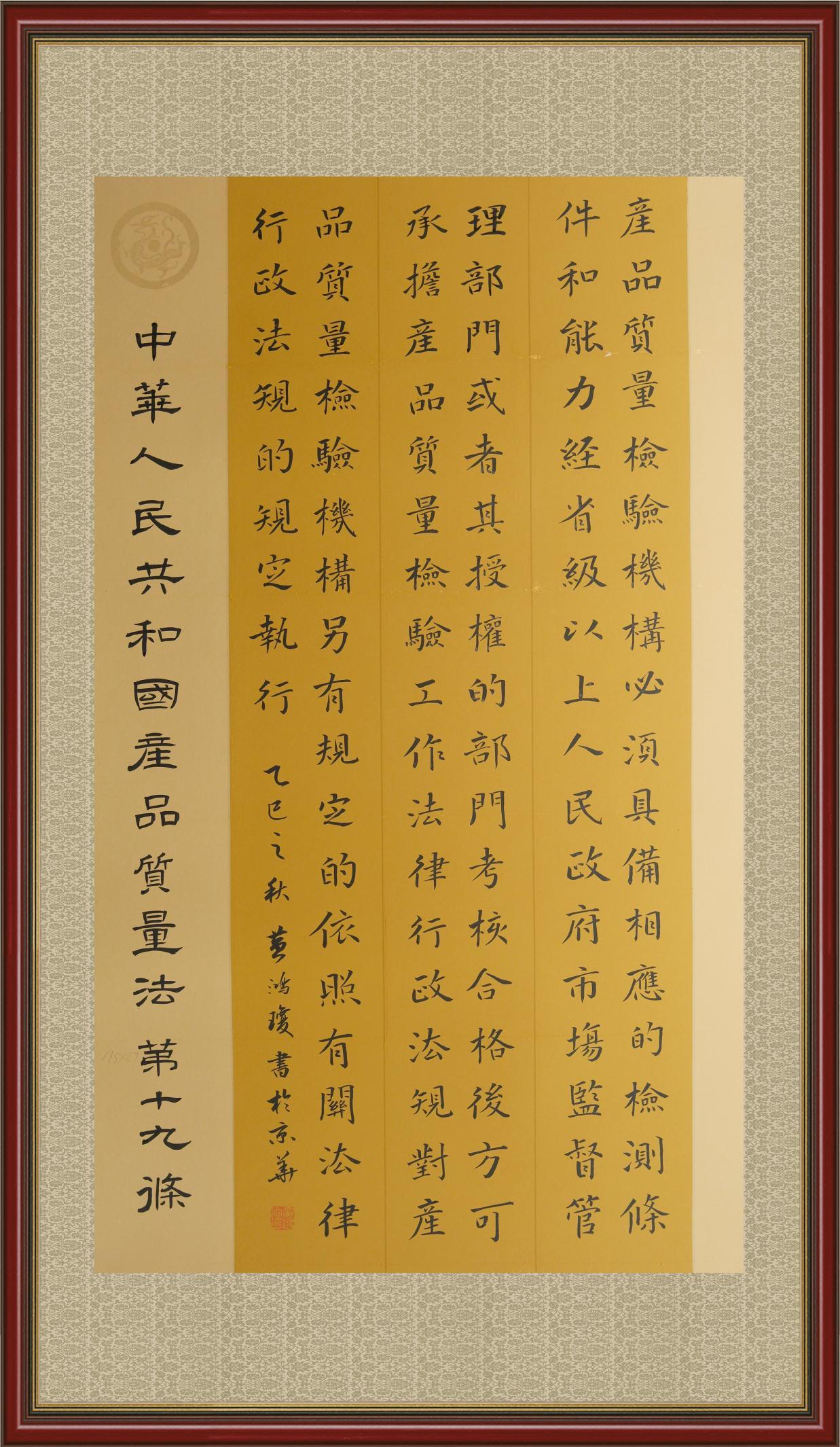 《中華人民共和國產(chǎn)品質(zhì)量法》自1993年9月1日起開始施行,先后進(jìn)行三次修正。作為產(chǎn)品質(zhì)量領(lǐng)域的基本法律,產(chǎn)品質(zhì)量法對規(guī)范產(chǎn)品質(zhì)量管理、維護(hù)消費(fèi)者合法權(quán)益、促進(jìn)經(jīng)濟(jì)社會(huì)發(fā)展具有重要意義。為更好地學(xué)習(xí)、宣傳、貫徹這部法律,在國家市場監(jiān)督管理總局法規(guī)司的支持下,法治日報(bào)社開展了“‘書·法’系列活動(dòng)之書寫《中華人民共和國產(chǎn)品質(zhì)量法》”活動(dòng)。