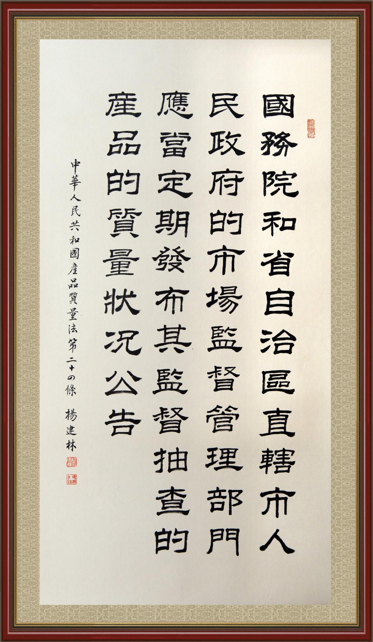 《中華人民共和國產(chǎn)品質(zhì)量法》自1993年9月1日起開始施行,先后進行三次修正。作為產(chǎn)品質(zhì)量領(lǐng)域的基本法律,產(chǎn)品質(zhì)量法對規(guī)范產(chǎn)品質(zhì)量管理、維護消費者合法權(quán)益、促進經(jīng)濟社會發(fā)展具有重要意義。為更好地學習、宣傳、貫徹這部法律,在國家市場監(jiān)督管理總局法規(guī)司的支持下,法治日報社開展了“‘書·法’系列活動之書寫《中華人民共和國產(chǎn)品質(zhì)量法》”活動。