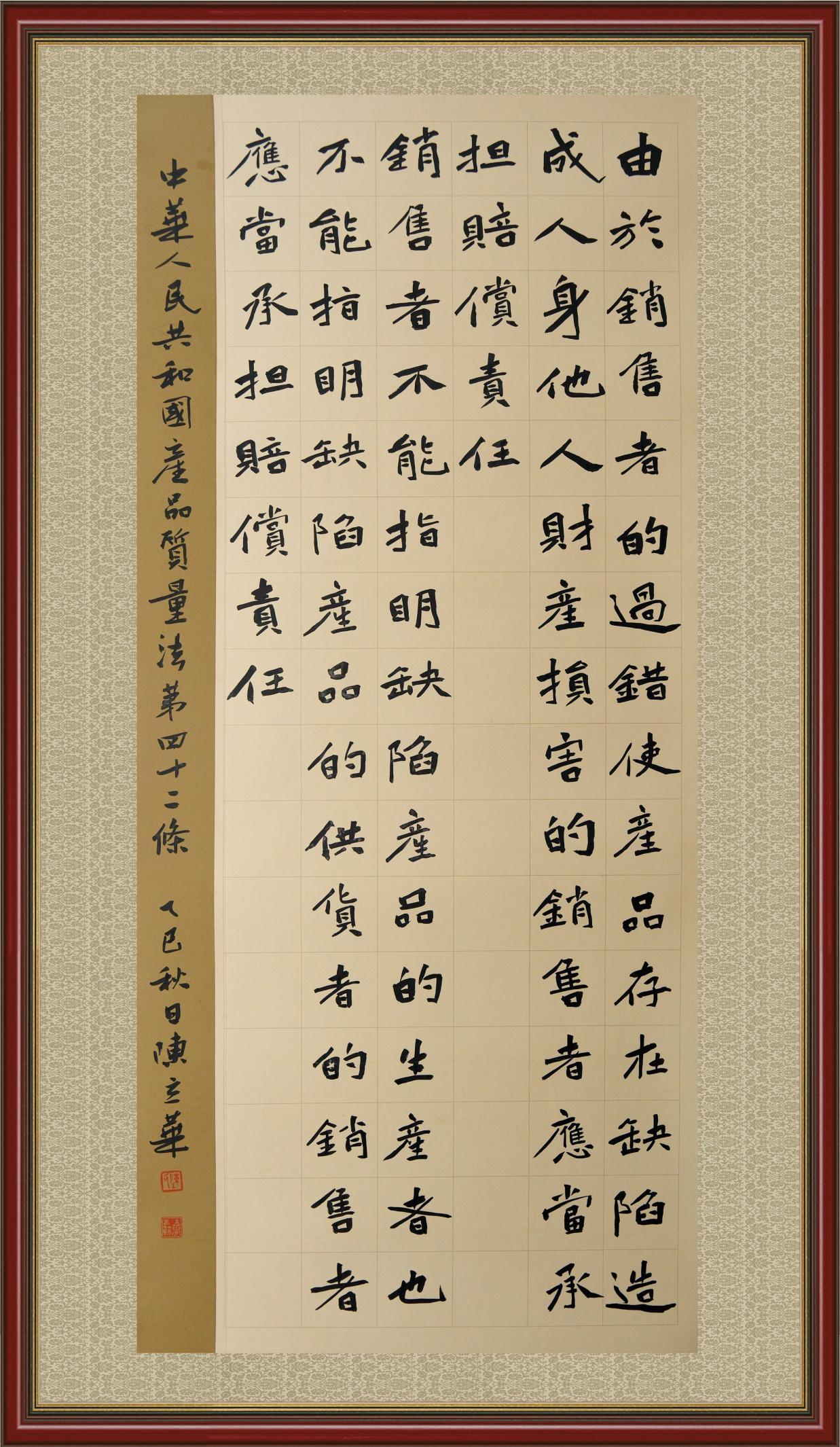 《中華人民共和國產(chǎn)品質(zhì)量法》自1993年9月1日起開始施行,先后進行三次修正。作為產(chǎn)品質(zhì)量領域的基本法律,產(chǎn)品質(zhì)量法對規(guī)范產(chǎn)品質(zhì)量管理、維護消費者合法權益、促進經(jīng)濟社會發(fā)展具有重要意義。為更好地學習、宣傳、貫徹這部法律,在國家市場監(jiān)督管理總局法規(guī)司的支持下,法治日報社開展了“‘書·法’系列活動之書寫《中華人民共和國產(chǎn)品質(zhì)量法》”活動。