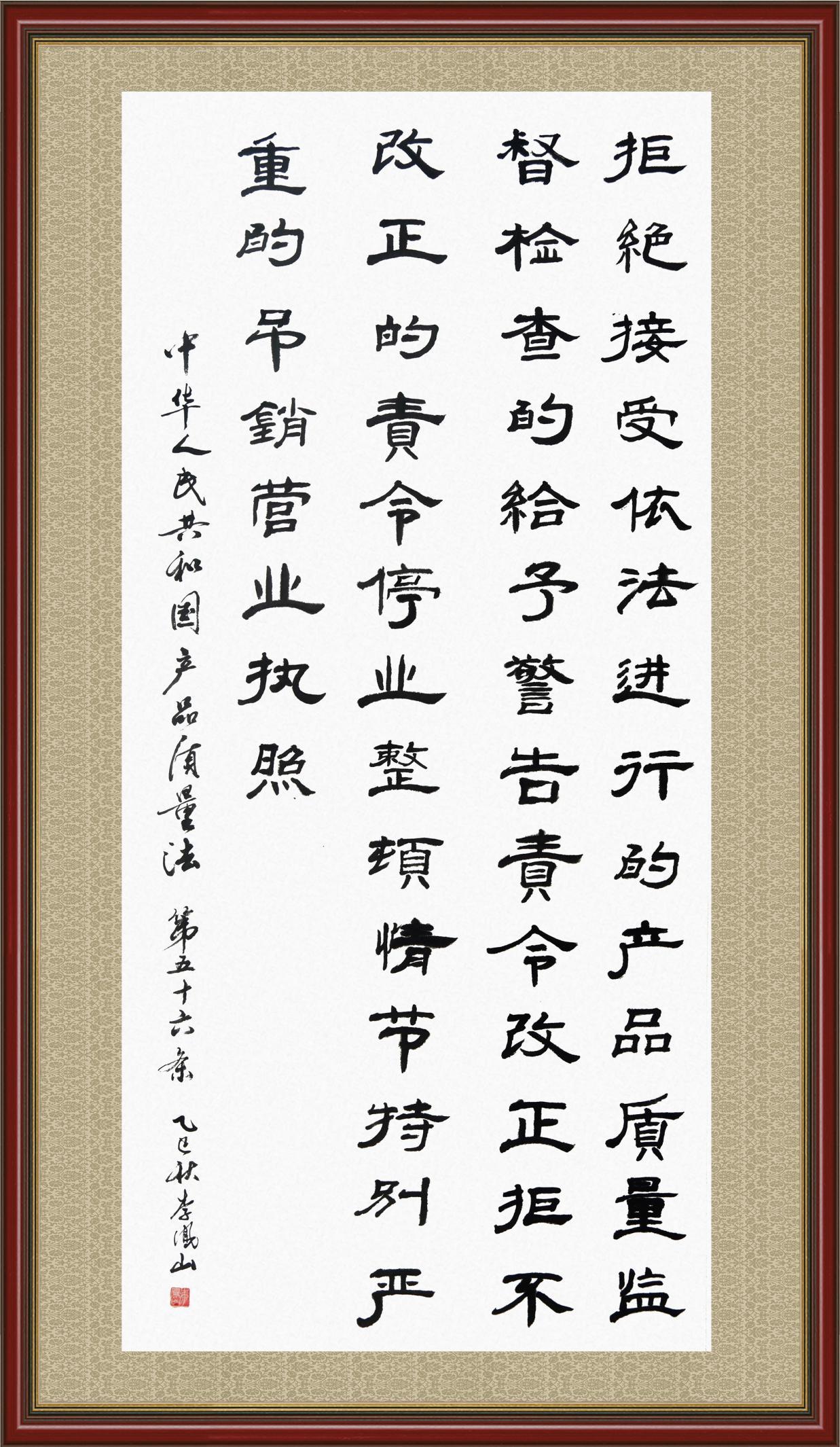 《中華人民共和國(guó)產(chǎn)品質(zhì)量法》自1993年9月1日起開始施行,先后進(jìn)行三次修正。作為產(chǎn)品質(zhì)量領(lǐng)域的基本法律,產(chǎn)品質(zhì)量法對(duì)規(guī)范產(chǎn)品質(zhì)量管理、維護(hù)消費(fèi)者合法權(quán)益、促進(jìn)經(jīng)濟(jì)社會(huì)發(fā)展具有重要意義。為更好地學(xué)習(xí)、宣傳、貫徹這部法律,在國(guó)家市場(chǎng)監(jiān)督管理總局法規(guī)司的支持下,法治日?qǐng)?bào)社開展了“‘書·法’系列活動(dòng)之書寫《中華人民共和國(guó)產(chǎn)品質(zhì)量法》”活動(dòng)。