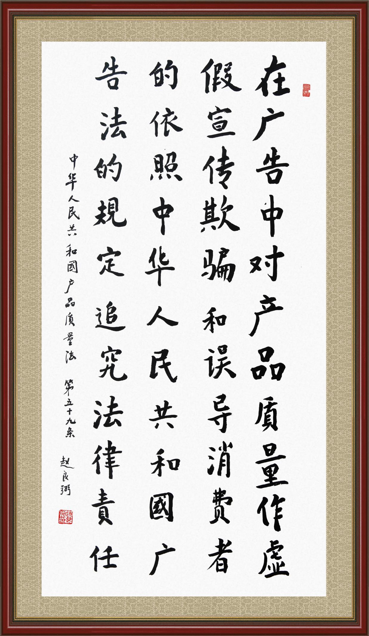 《中華人民共和國產(chǎn)品質(zhì)量法》自1993年9月1日起開始施行,先后進行三次修正。作為產(chǎn)品質(zhì)量領域的基本法律,產(chǎn)品質(zhì)量法對規(guī)范產(chǎn)品質(zhì)量管理、維護消費者合法權益、促進經(jīng)濟社會發(fā)展具有重要意義。為更好地學習、宣傳、貫徹這部法律,在國家市場監(jiān)督管理總局法規(guī)司的支持下,法治日報社開展了“‘書·法’系列活動之書寫《中華人民共和國產(chǎn)品質(zhì)量法》”活動。