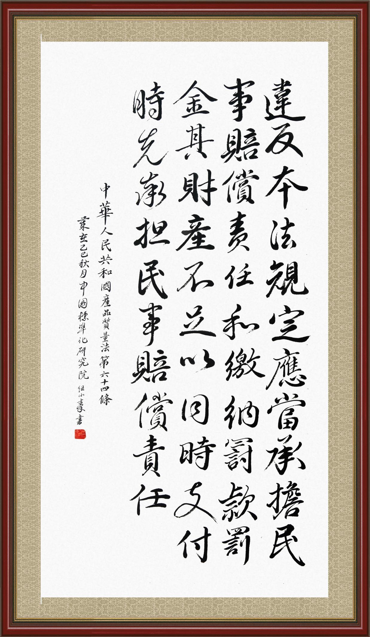 《中華人民共和國(guó)產(chǎn)品質(zhì)量法》自1993年9月1日起開始施行,先后進(jìn)行三次修正。作為產(chǎn)品質(zhì)量領(lǐng)域的基本法律,產(chǎn)品質(zhì)量法對(duì)規(guī)范產(chǎn)品質(zhì)量管理、維護(hù)消費(fèi)者合法權(quán)益、促進(jìn)經(jīng)濟(jì)社會(huì)發(fā)展具有重要意義。為更好地學(xué)習(xí)、宣傳、貫徹這部法律,在國(guó)家市場(chǎng)監(jiān)督管理總局法規(guī)司的支持下,法治日?qǐng)?bào)社開展了“‘書·法’系列活動(dòng)之書寫《中華人民共和國(guó)產(chǎn)品質(zhì)量法》”活動(dòng)。