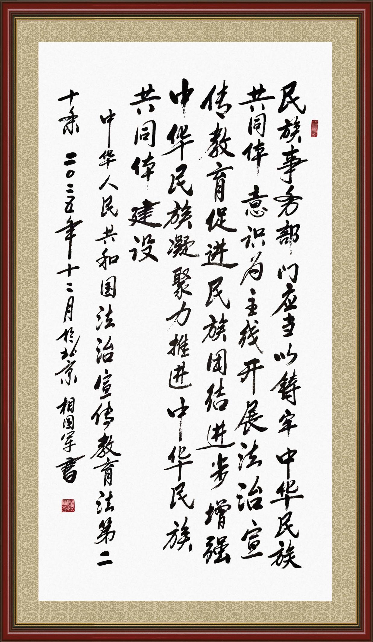 2020年7月11日,由法治日報社主辦的“書·法”系列活動正式啟動,先后書寫《中華人民共和國民法典》《中華人民共和國憲法》《中華人民共和國民營經(jīng)濟促進法》等21部法律法規(guī)。