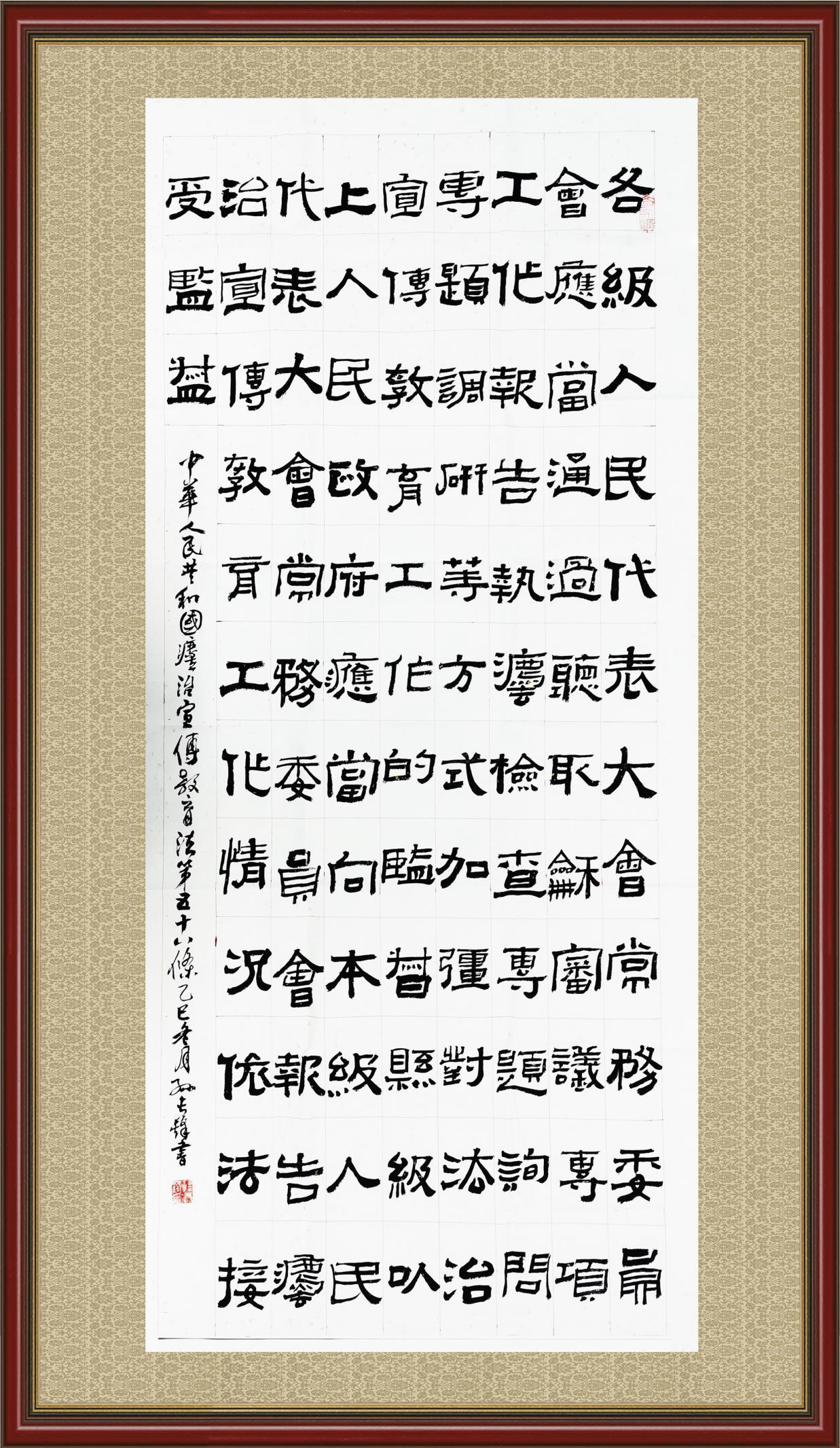 2020年7月11日,由法治日報社主辦的“書·法”系列活動正式啟動,先后書寫《中華人民共和國民法典》《中華人民共和國憲法》《中華人民共和國民營經(jīng)濟促進法》等21部法律法規(guī)。