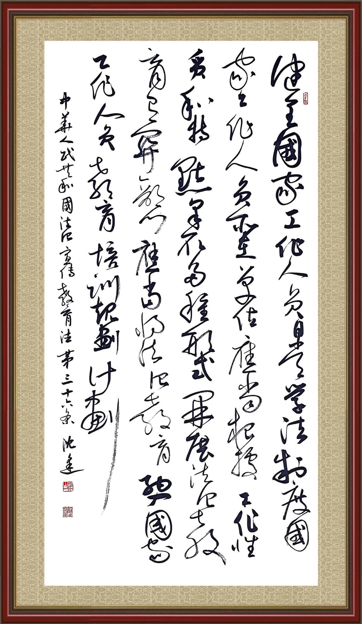 2020年7月11日,由法治日?qǐng)?bào)社主辦的“書(shū)·法”系列活動(dòng)正式啟動(dòng),先后書(shū)寫(xiě)《中華人民共和國(guó)民法典》《中華人民共和國(guó)憲法》《中華人民共和國(guó)民營(yíng)經(jīng)濟(jì)促進(jìn)法》等21部法律法規(guī)。