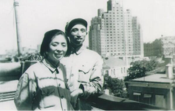 1949年5月24日,莊重夫婦在新華社華東總分社(及上海分社)樓頂?shù)暮嫌啊?/span>