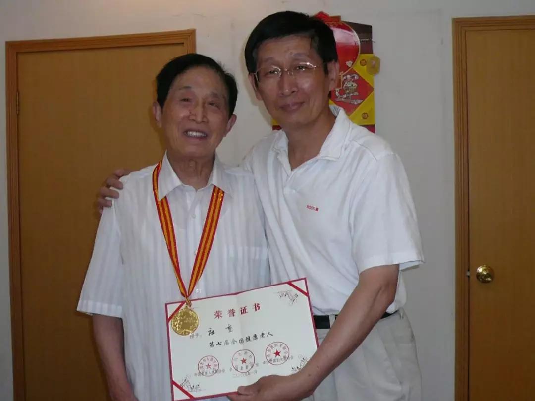 2009年父親再次被評(píng)為第七屆全國(guó)健康老人,攝于家中,時(shí)年92周歲