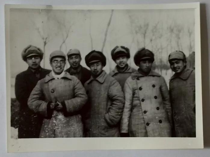 父親(右二)與新華社華東前線(xiàn)分社幾位領(lǐng)導(dǎo)人,1948年攝于開(kāi)封戰(zhàn)役前線(xiàn)。