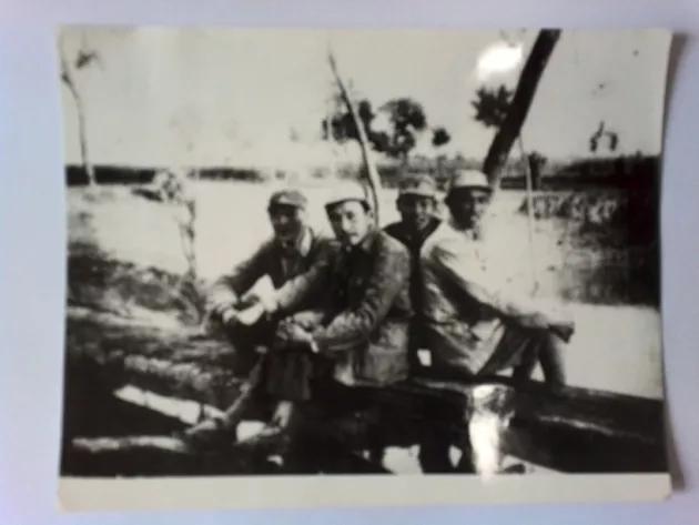 1947年秋人民解放軍大反攻,新華社華東前線(xiàn)分社記者(父親位于右一)隨大軍渡過(guò)黃河南下中原時(shí)攝于黃河岸上。