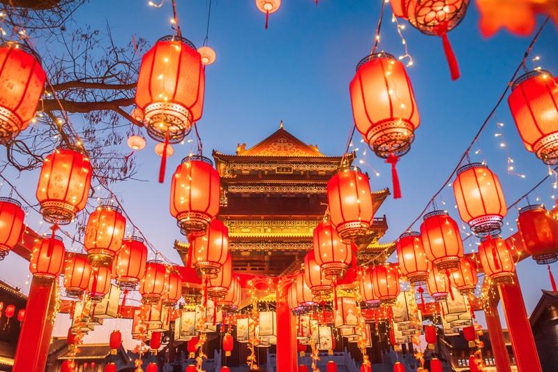 元宵節(jié)臨近,山東日照東夷小鎮(zhèn)被花燈裝扮的流光溢彩。王勇攝。