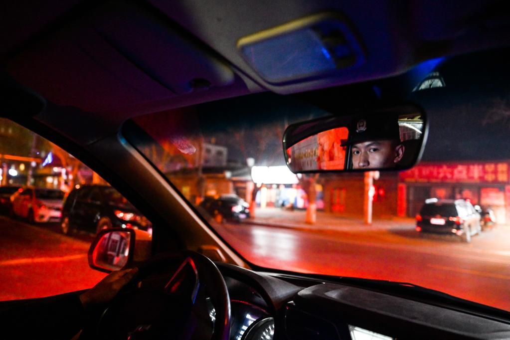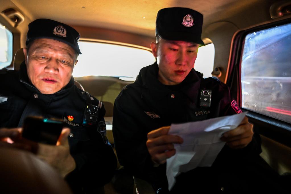 2月5日,通遼市奈曼旗公安局大沁他拉派出所民警徐萌(右)和郝新軍在出警途中核對報案人信息。