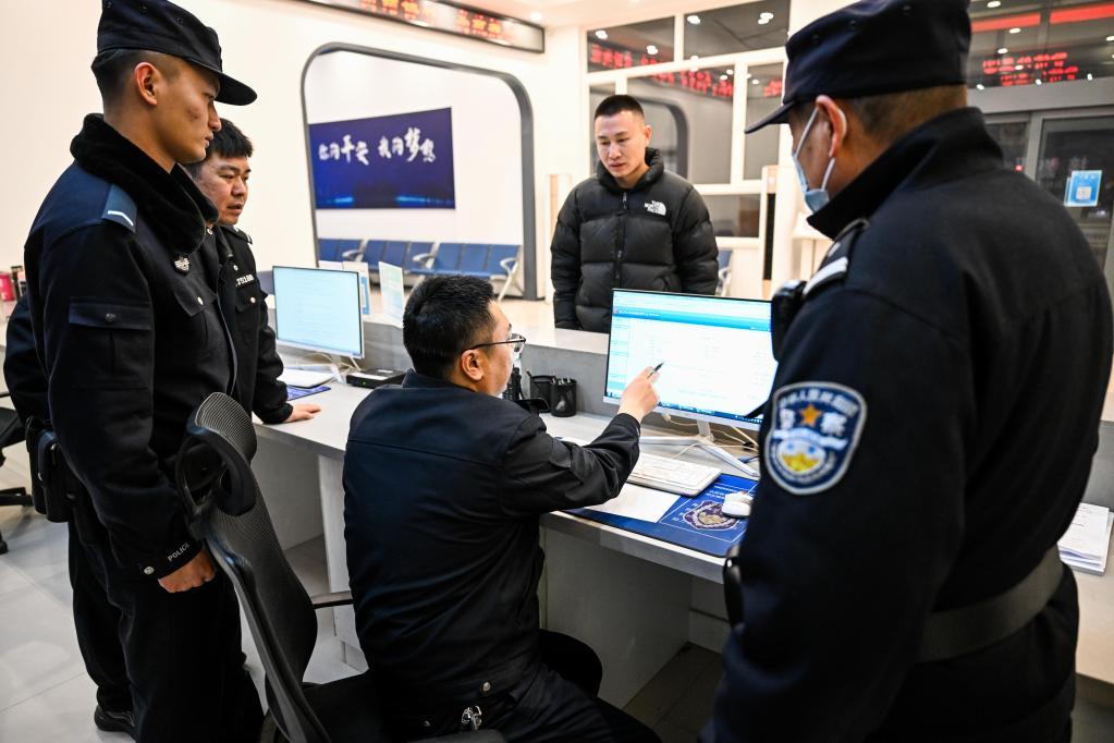 2月5日,通遼市奈曼旗公安局大沁他拉派出所民警們在綜合指揮室值班。