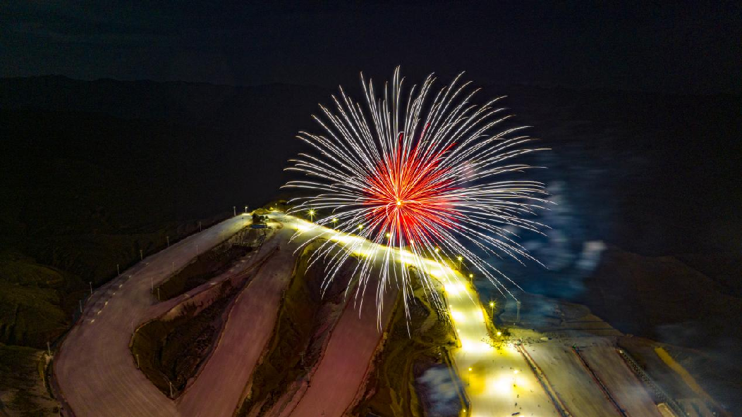 2月5日,馬鬃山滑雪場上演大型雪地?zé)熁ㄐ?,吸引了大量游客觀看。(無人機照片)新華網(wǎng)發(fā) (樂炎 攝)
