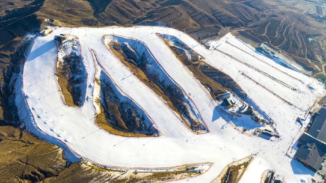 這是2月5日拍攝的呼和浩特馬鬃山滑雪場全景。(無人機照片)新華網(wǎng)發(fā)(樂炎 攝)
