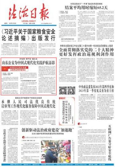 “全省公安機(jī)關(guān)深入學(xué)習(xí)貫徹黨的二十大和全國(guó)兩會(huì)精神,錨定‘走在前、開(kāi)新局’,全力服務(wù)高質(zhì)量發(fā)展、全面護(hù)航現(xiàn)代化強(qiáng)省建設(shè),努力以新安全格局保障新發(fā)展格局,為推動(dòng)中國(guó)式現(xiàn)代化山東實(shí)踐創(chuàng)造更加安全穩(wěn)定的政治社會(huì)環(huán)境?!鄙綎|省副省長(zhǎng)、公安廳廳長(zhǎng)李偉近日接受《法治日?qǐng)?bào)》記者采訪時(shí)說(shuō)。