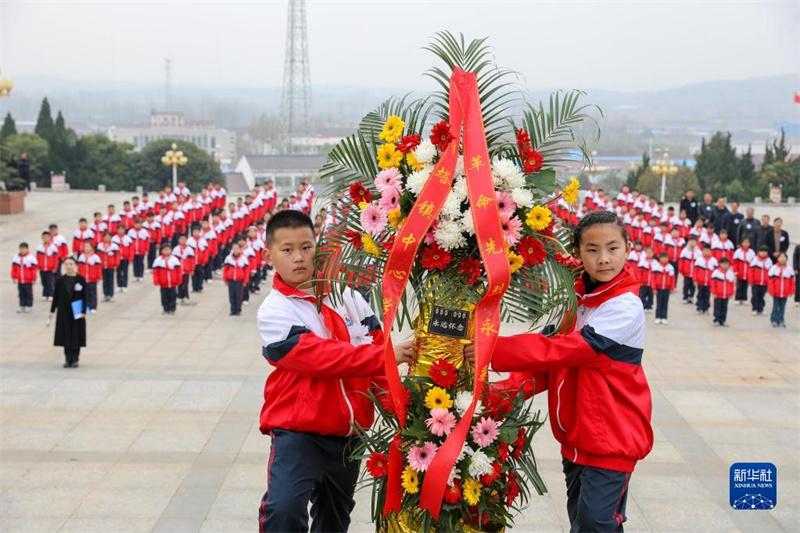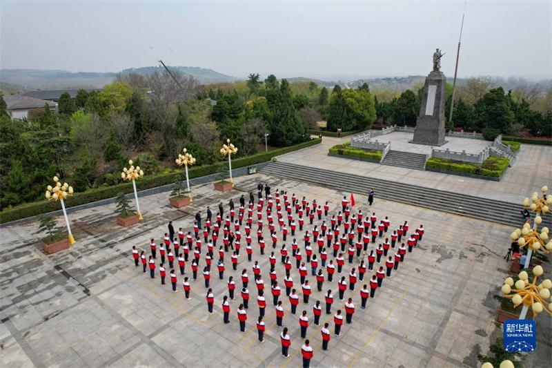 3月30日,學(xué)生在皖東烈士陵園祭奠先烈(無人機(jī)照片)。