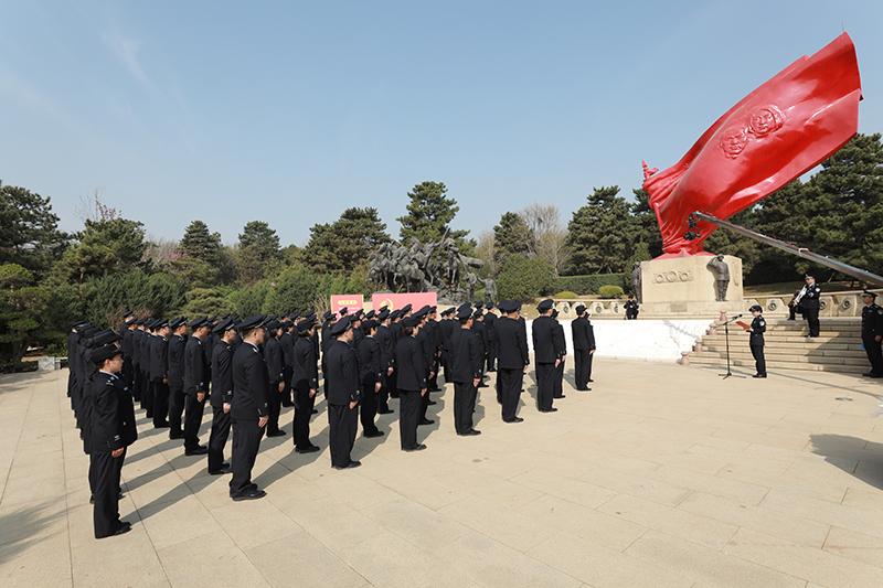 日前,按照北京市公安局“致敬·緬懷·奮進(jìn)”——首都公安英烈紀(jì)念活動整體安排,來自局屬各單位的功模代表、2022“北京榜樣·最美警察”當(dāng)選者、北京警察學(xué)院學(xué)生黨員代表、石景山分局黨員民警代表共計(jì)100余人,在八寶山革命公墓舉辦緬懷首都公安英烈活動。在革命公墓墓區(qū)、烈士骨灰堂、英烈墻,全體人員向在這里安放骨灰的北京公安烈士敬獻(xiàn)鮮花、行鞠躬禮并聆聽烈士生平。他們擦拭墓碑,重溫公安英烈的光輝事跡,向?yàn)榫S護(hù)首都社會安定、人民幸福安寧獻(xiàn)出寶貴生命的公安英烈致以崇高敬意,表達(dá)深切哀思。