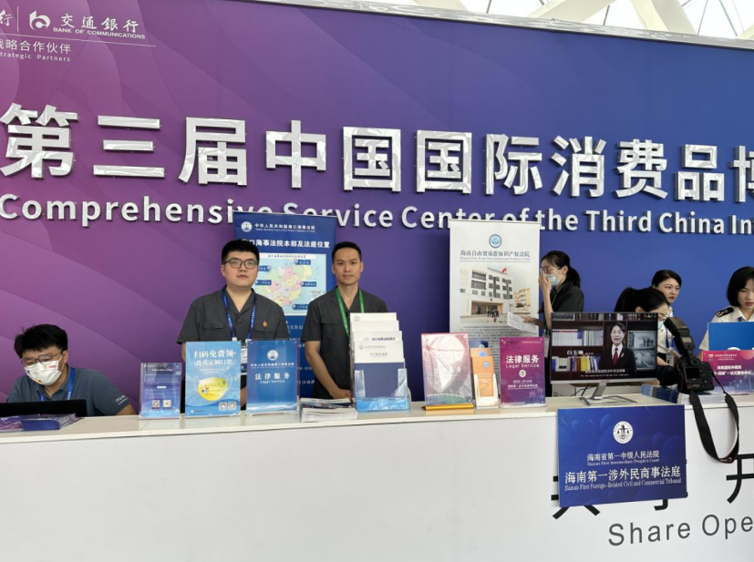 在消博會(huì)舉辦期間,海口海事法院將每日安排2名干警進(jìn)駐??谥鲿?huì)場(chǎng)一線,為參展商和觀展市民提供司法服務(wù),全力為第三屆國(guó)際消費(fèi)品博覽會(huì)“保駕護(hù)航”。