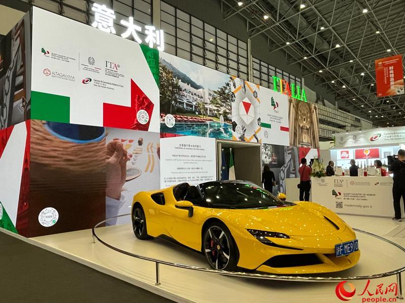 第三屆消博會意大利展臺展出的法拉利汽車