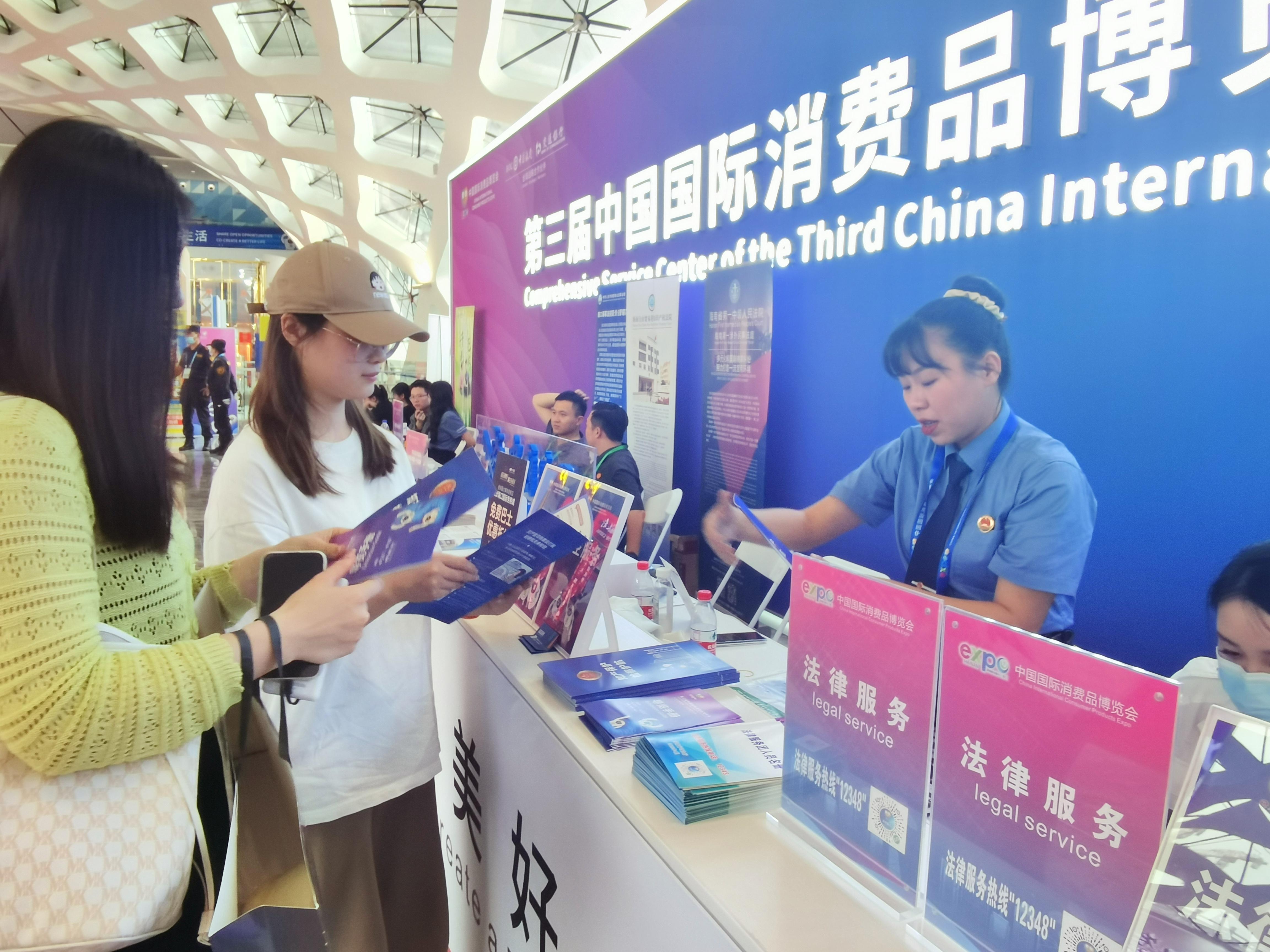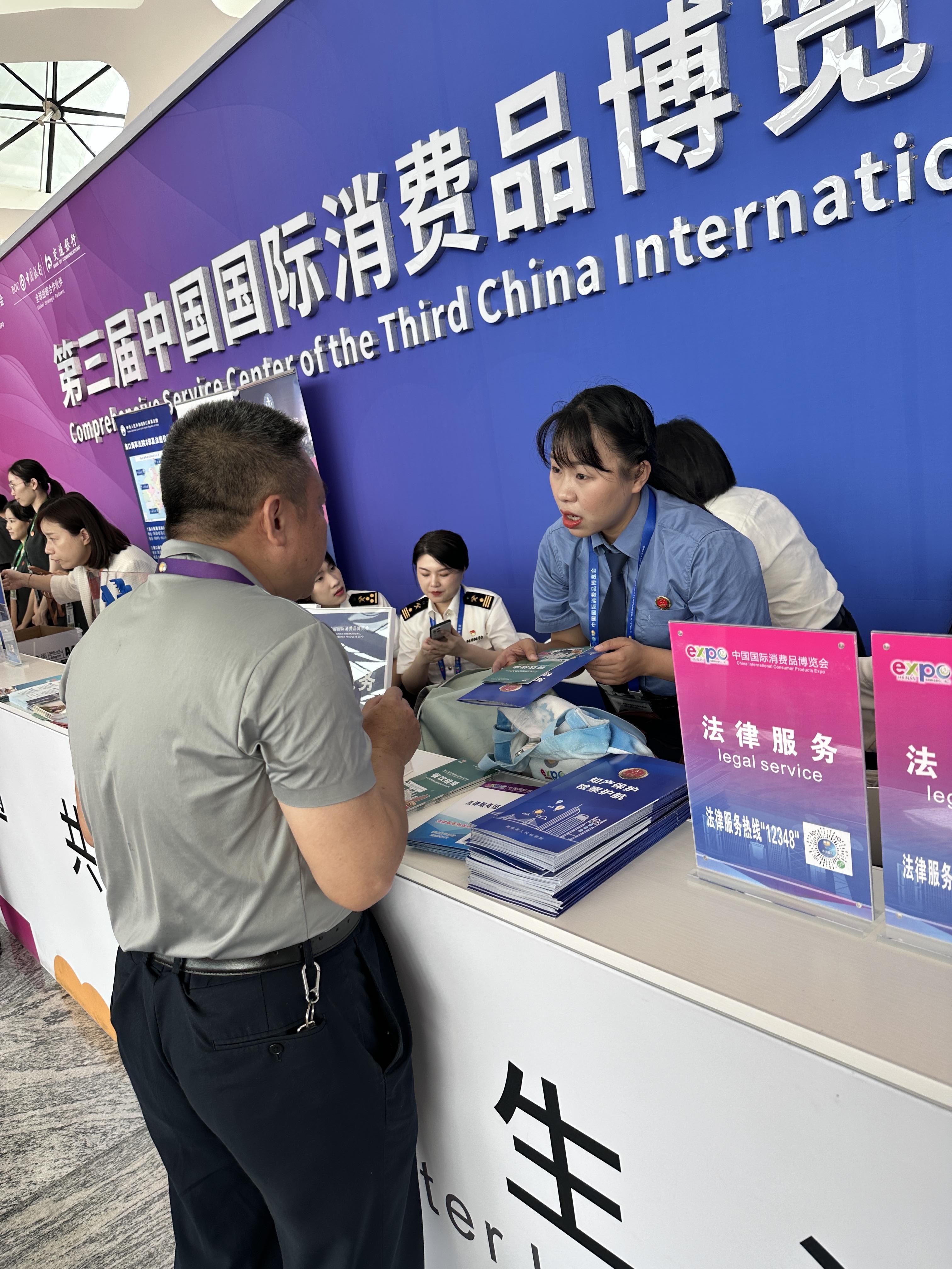2023年4月10日至15日,第三屆消博會(huì)在海南海口舉辦,為全面做好第三屆消博會(huì)知識(shí)產(chǎn)權(quán)保護(hù)工作,4月11日起,海南省高級(jí)人民檢察院第一分院進(jìn)駐展會(huì),在綜合服務(wù)處設(shè)置服務(wù)窗口,指派一分院知識(shí)產(chǎn)權(quán)檢察辦公室,開展知識(shí)產(chǎn)權(quán)保護(hù)法治宣傳活動(dòng)。