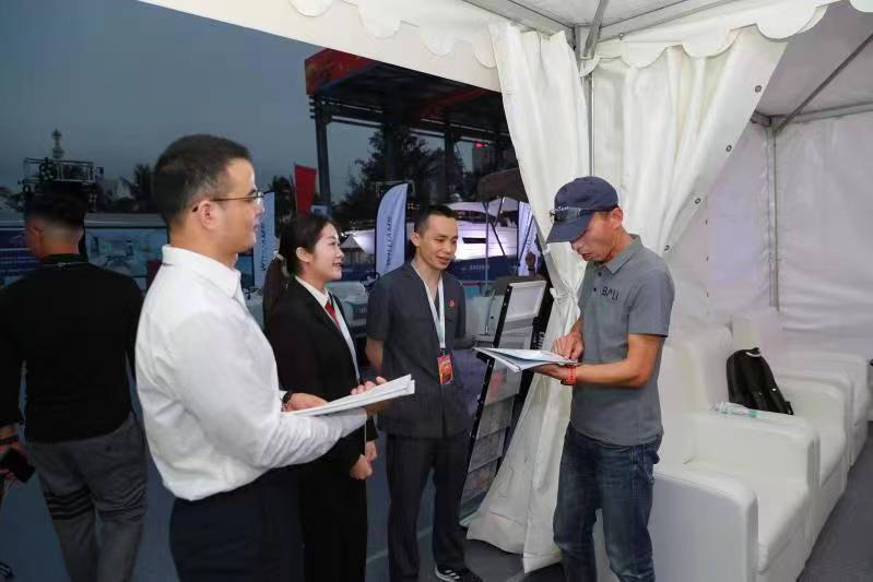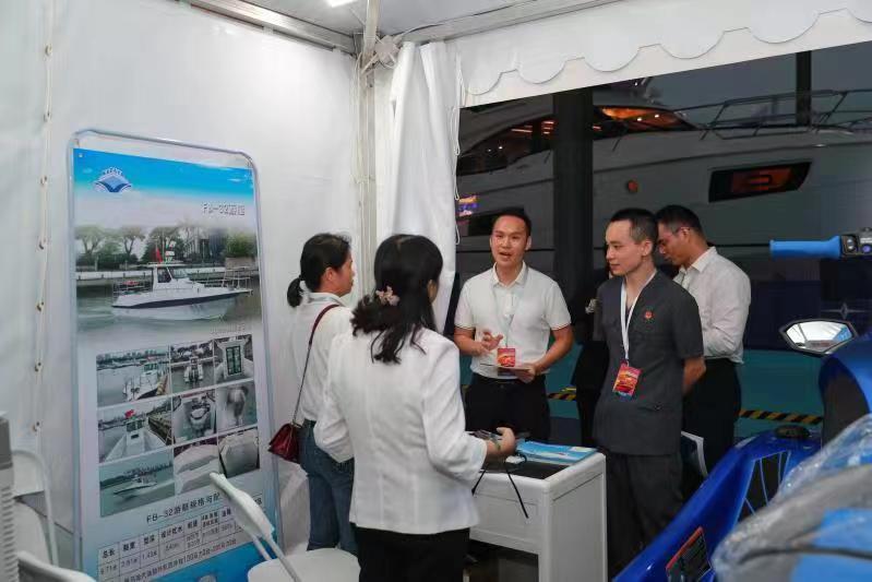 隨著海洋環(huán)保和綠色低碳出行理念日漸深入人心,新能源游艇已成為業(yè)內(nèi)最具發(fā)展?jié)摿Φ姆较蛑?。在杰特賽特海洋公司展臺,海口海事法院了解到該公司將于今年8月引入國內(nèi)第一艘純電游艇,法院干警詳細(xì)了解了該艘游艇的基本情況以及純電游艇進口、船檢、入級、保險等方面的相關(guān)問題。