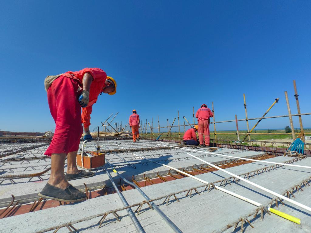 備戰(zhàn)全島封關(guān),相關(guān)硬件設施建設不能落后。在洋浦國際集裝箱碼頭附近,洋浦港封關(guān)運作項目建設現(xiàn)場一片繁忙,百余名工人頂著烈日或扎鋼筋,或拌水泥,或裝樓板,個個汗流浹背?!?月要完工,助力海南自貿(mào)港到今年底具備封關(guān)運作硬件條件?!表椖控撠熑死顤|冬說。