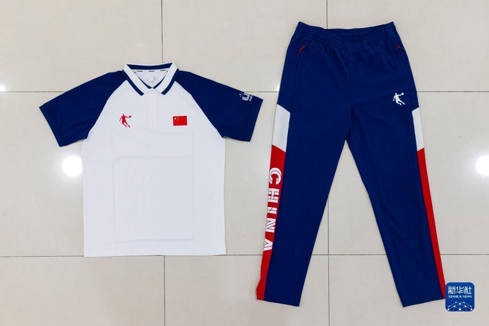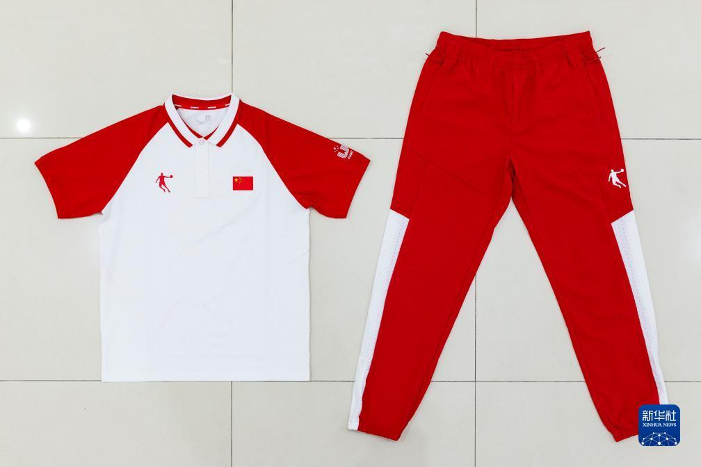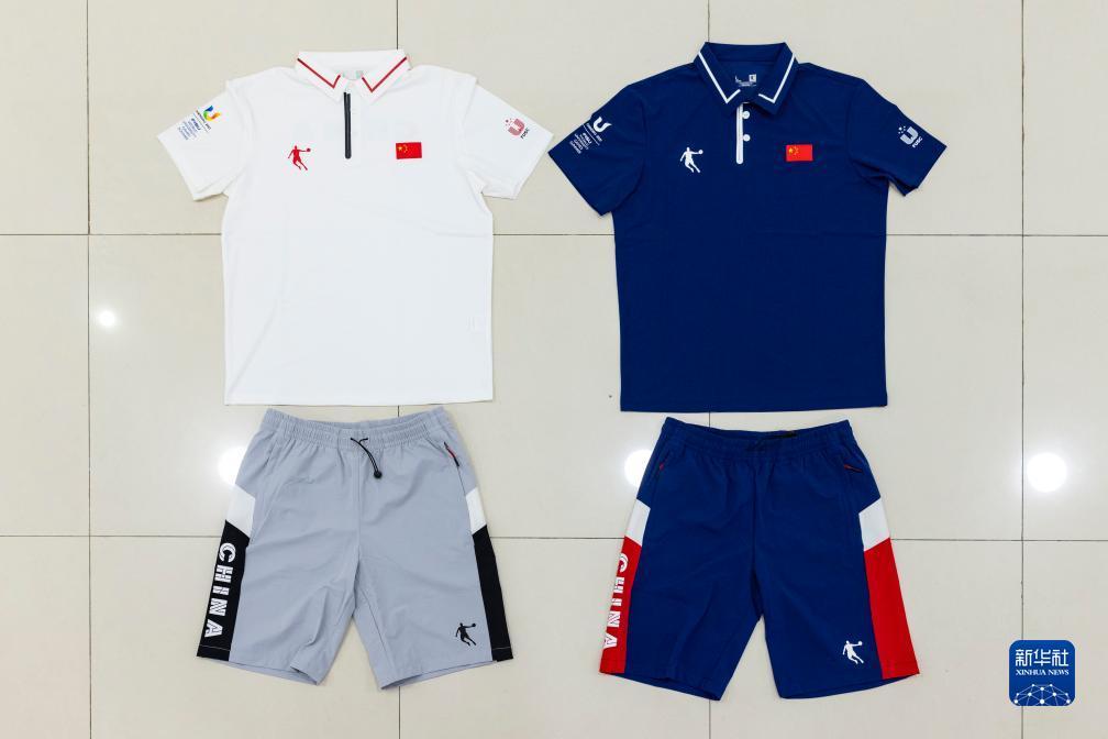這是7月24日拍攝的第31屆世界大學(xué)生夏季運動會中國代表團成員配發(fā)裝備中的POLO短T恤衫和長褲。新華社記者 沈伯韓 攝