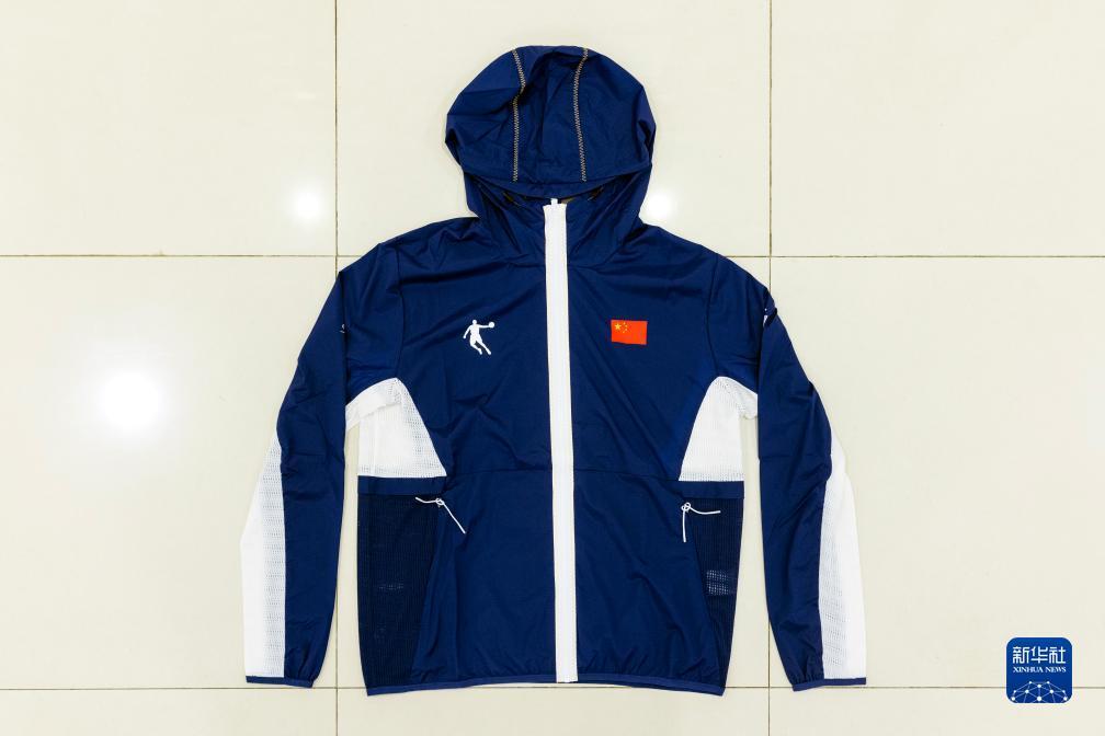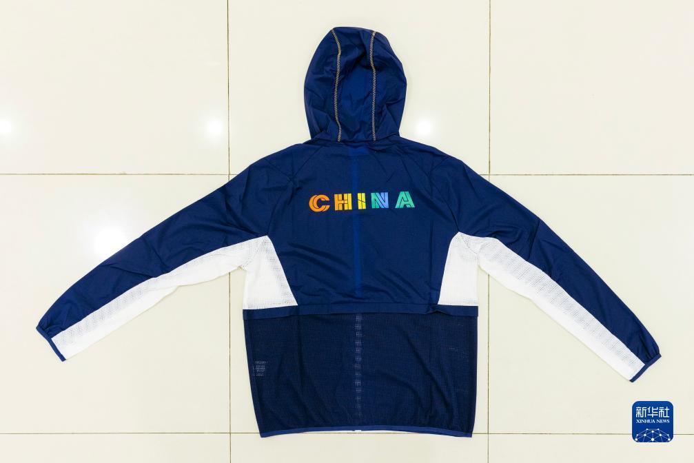這是7月24日拍攝的第31屆世界大學(xué)生夏季運動會中國代表團成員配發(fā)裝備中的梭織單層夾克。新華社記者 沈伯韓 攝