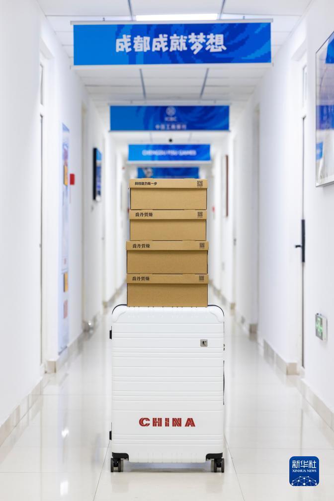 這是7月24日在第31屆世界大學(xué)生夏季運動會大運村中國代表團駐地拍攝的代表團成員配發(fā)裝備。新華社記者 沈伯韓 攝