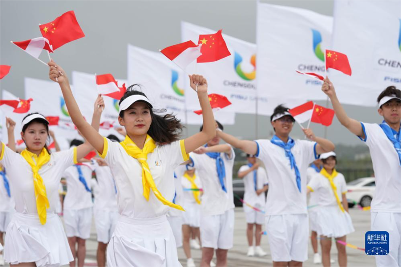 7月27日下午,來華出席成都大運(yùn)會開幕式并訪問的印度尼西亞總統(tǒng)佐科抵達(dá)四川省成都市。這是歡迎儀式現(xiàn)場。