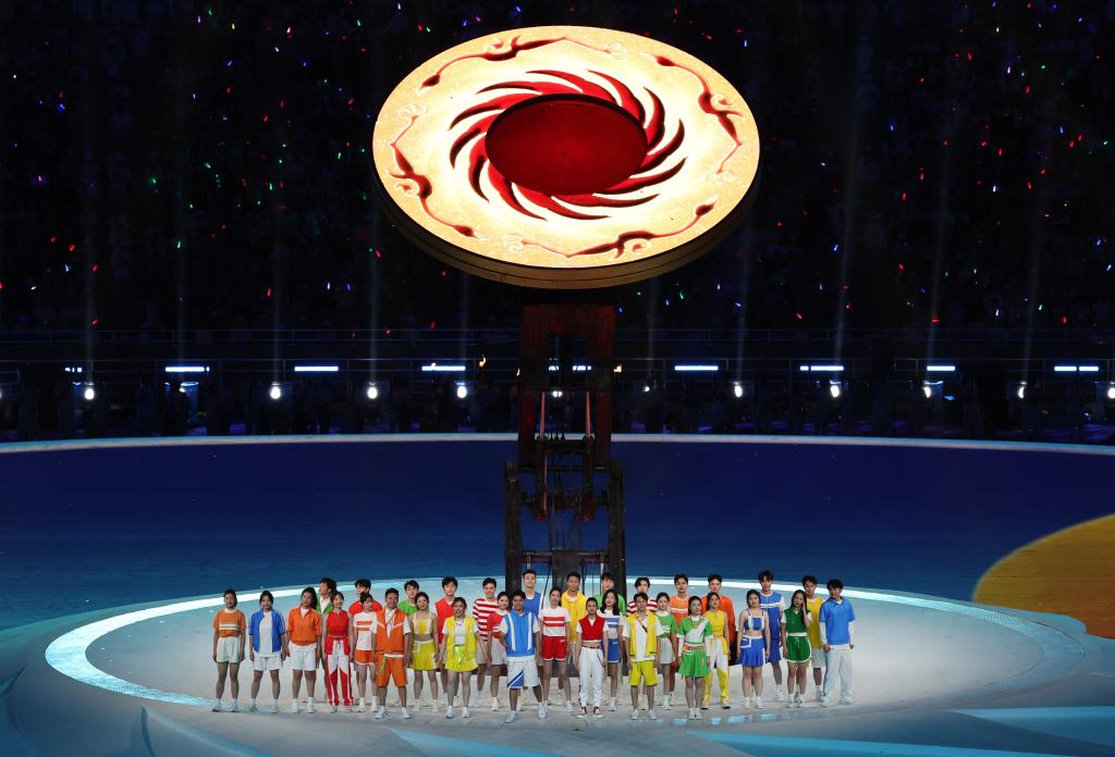 陳維亞告訴記者,金芒舞臺(tái)、太陽(yáng)圓屏、太陽(yáng)神鳥(niǎo)圖案圣火盤(pán)、火炬塔,以及倒計(jì)時(shí)“禮贊陽(yáng)光”、運(yùn)動(dòng)員入場(chǎng)式“錦繡之路”、會(huì)旗入場(chǎng)“榮耀歷程”、文體表演“青春追夢(mèng)”、點(diǎn)火儀式“青春圓夢(mèng)”和尾聲“陽(yáng)光下的歡聚”都以“陽(yáng)光”作為創(chuàng)意要素、貫穿開(kāi)幕式始終。