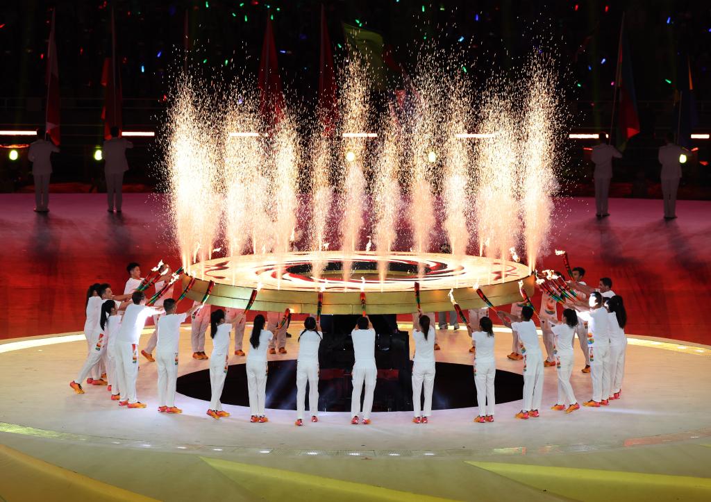 隨著大運(yùn)會(huì)主火炬塔被點(diǎn)燃,整個(gè)開(kāi)幕式被推向高潮。