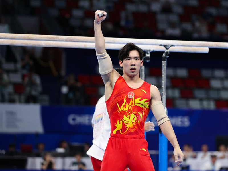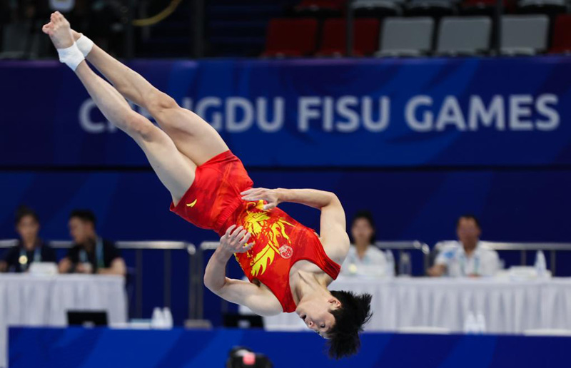 新華社成都8月2日電(記者譚暢、朱青)成都大運會體操項目2日進(jìn)入第二個比賽日,由張博恒、鄒敬園、蘇煒德、蘭星宇、侍聰組成的中國隊以262.594分獲得男子團(tuán)體冠軍。