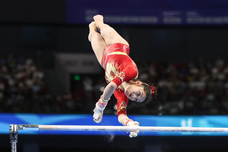 中國隊(duì)總體發(fā)揮穩(wěn)定,但世錦賽高低杠冠軍韋筱圓狀態(tài)欠佳,兩項(xiàng)得分均未能計(jì)入團(tuán)體總分。最終,全隊(duì)得分163.029分。