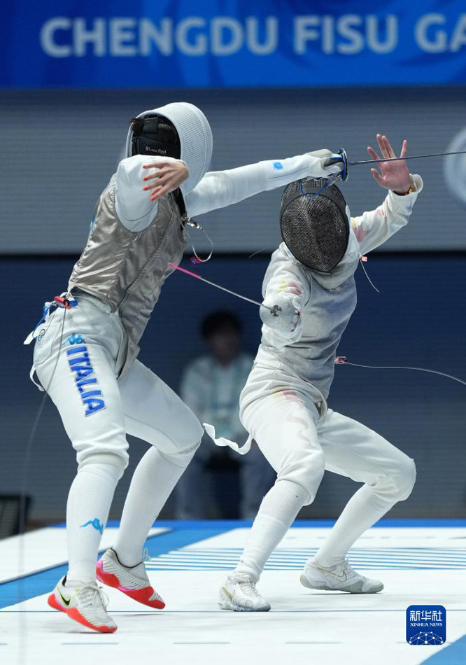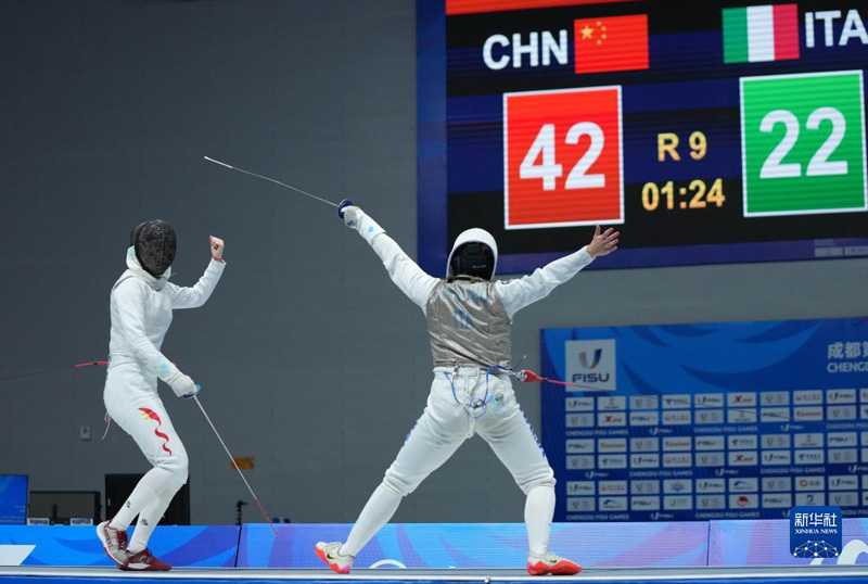 當(dāng)日,在成都舉行的第31屆世界大學(xué)生夏季運動會擊劍女子花劍團體金牌賽中,中國隊以45比22戰(zhàn)勝意大利隊,獲得金牌。