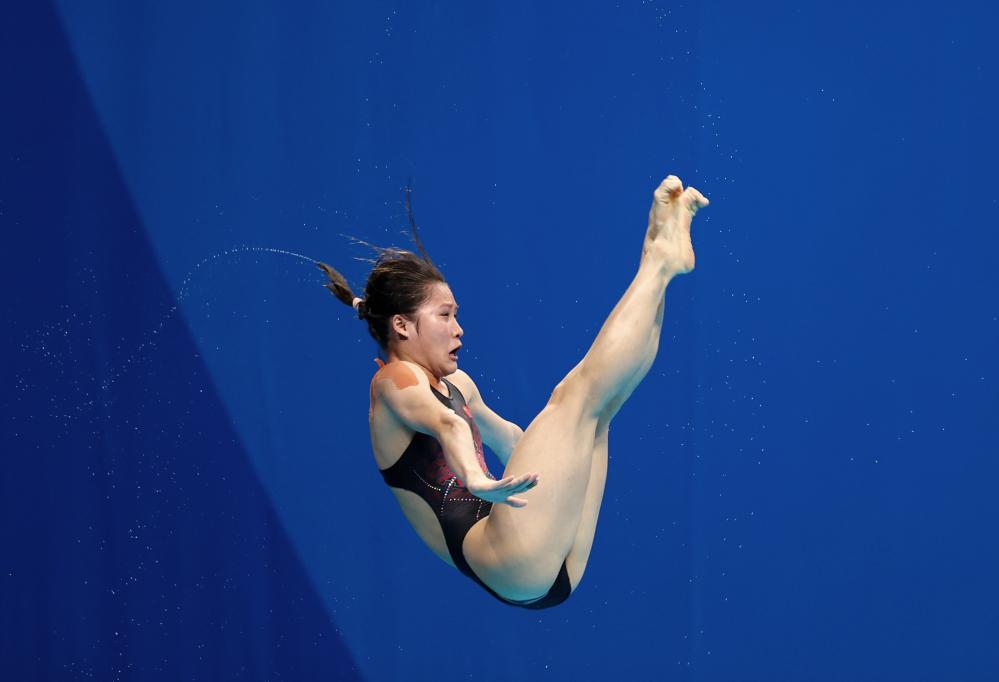 8月7日,中國隊選手王偉瑩在比賽中。當(dāng)日,在成都大運會混合團(tuán)體決賽中,中國隊選手黃子淦/王偉瑩以436.45分的總成績獲得冠軍。新華社記者 王翔 攝