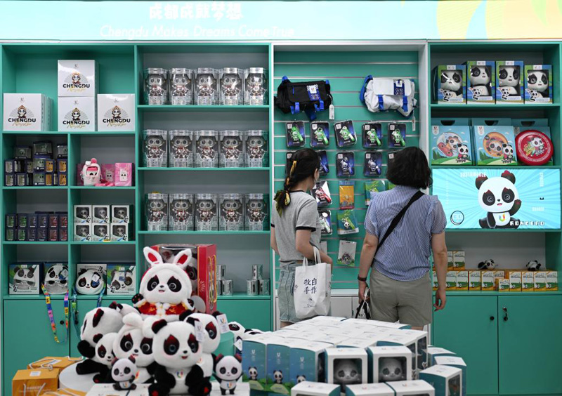 7月18日,市民在成都市一家大運會特許商品零售店內(nèi)選購。新華社記者 胥冰潔 攝