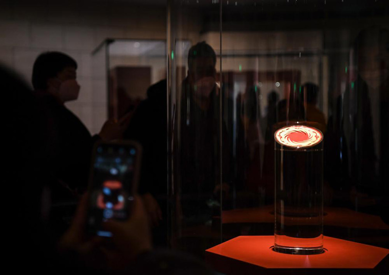 觀眾在位于四川成都的金沙遺址博物館參觀太陽神鳥金飾。新華社記者 王曦 攝